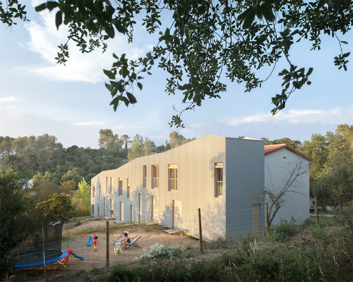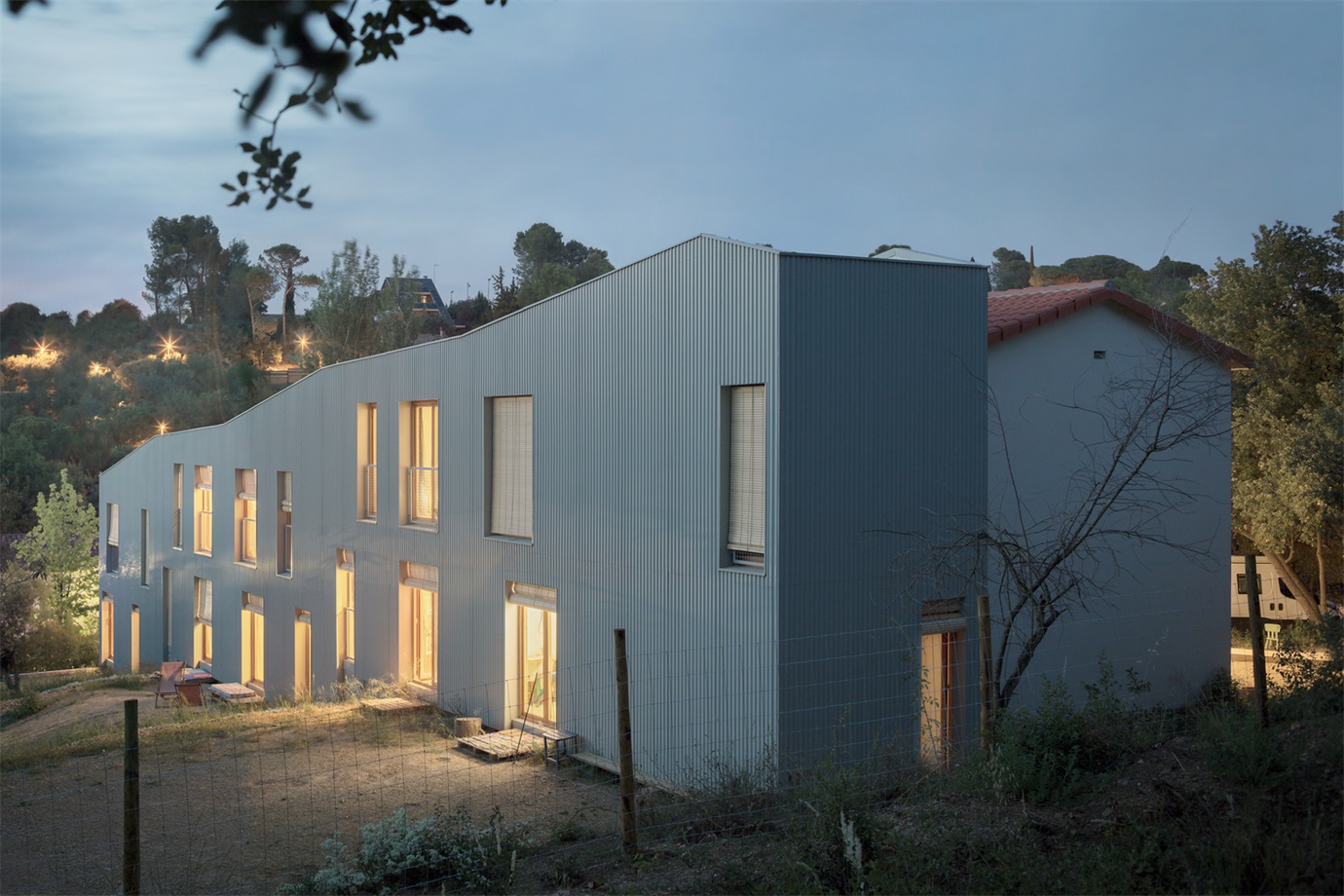 该公寓楼设计位于科尔塞罗拉公园(Parc de Collserola)林木茂盛、自然价值极高的地区,学校旁边有一座建筑,最初是学校教师的住所。这个地方被人们称为 Les Cases dels Mestres。这座建筑建于 1969 年,是典型的廉租房建筑。这些建筑严谨而诚实,符合一些标准特征:简单而不带偏见的体量、略显传统的语言、非常短的结构间距以及合理而成本有限的施工方法。房屋失去了存在的理由,住宅也逐渐废弃。尽管如此,它们仍然留在了人们的记忆中,几十年后,一场邻里运动设法将其修复,用作社会合作住宅。
