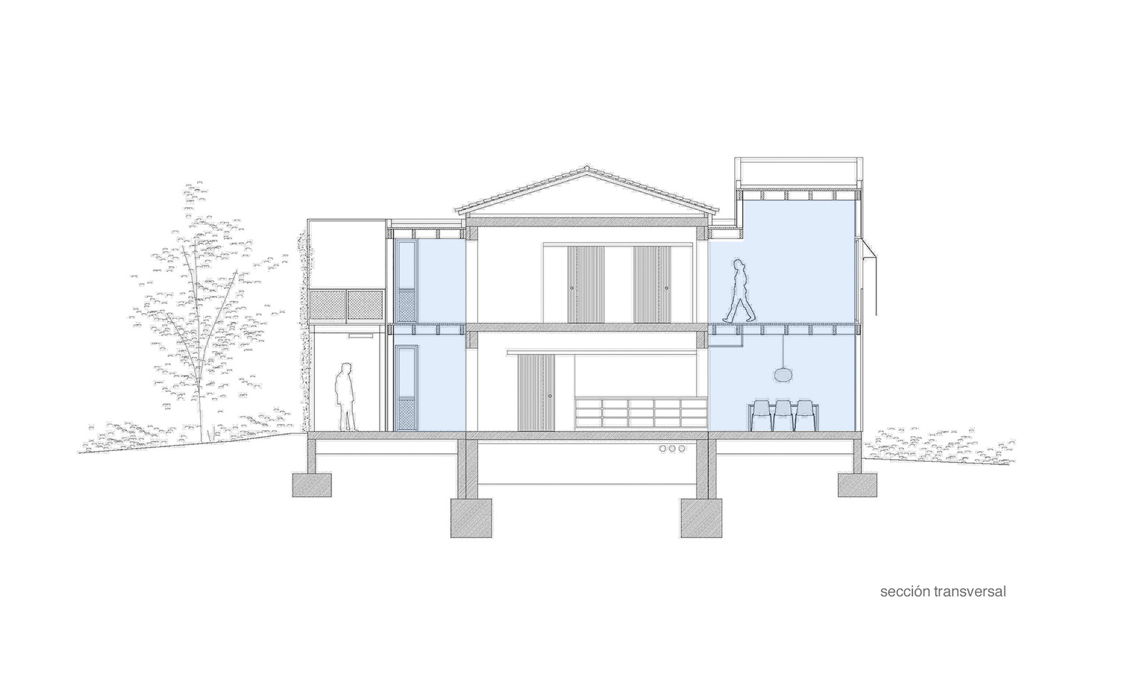 翻新项目旨在将其改造成社会合作住宅,增强其原有特色,并使不同单元的配置具有必要的灵活性。该提案的基础是在两个长立面各增加一个新的托架。两座新建筑与原有建筑对话,相辅相成。这两座新建筑可以解决原有建筑在以下方面的不足:新住宅的可达性、房间的大小、使用的灵活性,以及屋顶和外墙的节能性。这些新翼中的第一翼,也就是从东面接待游客的那一翼,提供了一系列的人行道和楼梯,以适应陡峭的地形坡度,并陪伴使用者到达每栋房屋的门口。