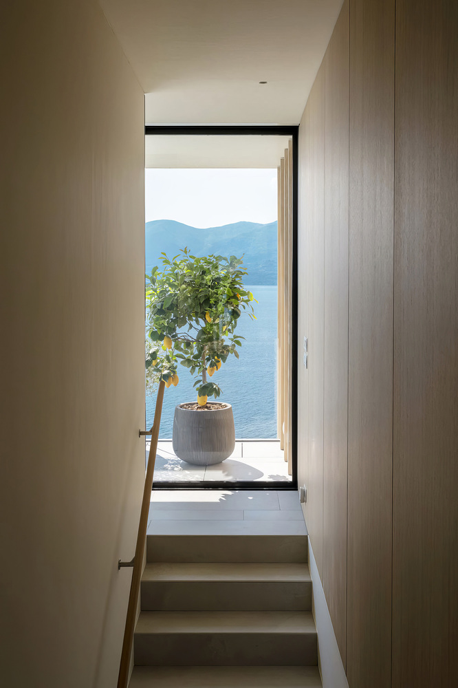 庭院的布局遵循尊重地形起伏的线条,植被的选择也与当地地形相适配:平坦区域种植草坪,坡度较陡的地方则选用特定物种。原生橄榄树和既有的高大柏树在项目构成中得到保留和凸显 —— 对于居住者的舒适度而言,植被与建筑同等重要。