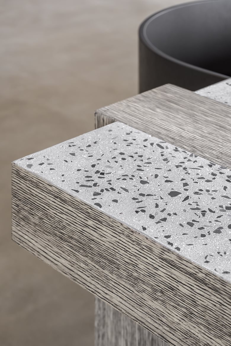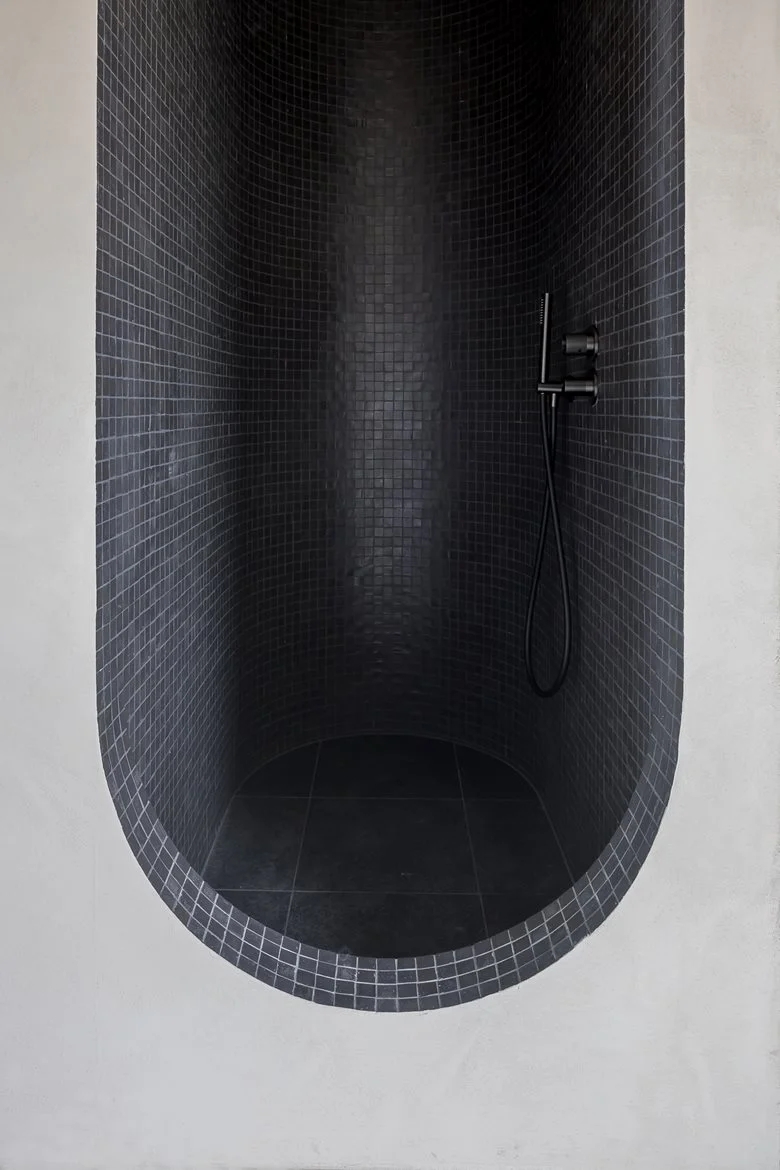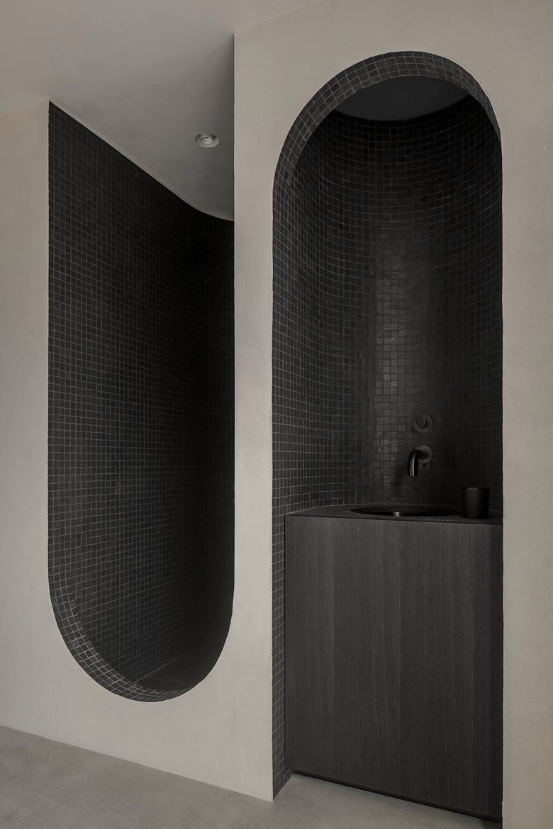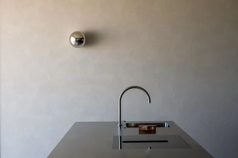 “无限之居” 注重住宅的耐用性,采用了不锈钢、天然石材、石灰水磨石和木材等耐用且可持续的材料。值得注意的设计元素包括经过银色钢丝刷处理的橡木,展现出富有动感的木纹图案,以及其中一间淋浴室的水磨石覆层,这种材料在墙壁、洗手盆和淋浴间入口之间实现了无缝过渡。回收材料在这个项目中发挥了关键作用,包括由回收的电脑屏幕制成的马赛克瓷砖、一个回收的壁炉底座,以及用项目剩余材料制作的装饰物件。