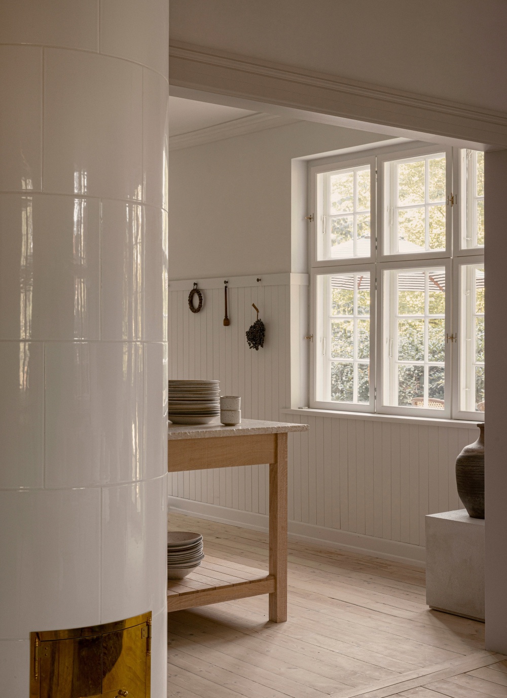 石灰墙的质朴肌理:墙面采用传统工艺的石灰涂层,其细腻的肌理与微妙的色差,如同一幅 “动态的抽象画”,随光线变化呈现出不同的质感层次。这种材质选择既呼应了自然主义的设计思潮,又通过手工工艺的独特性,为空间注入了不可复制的艺术感。