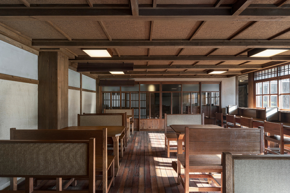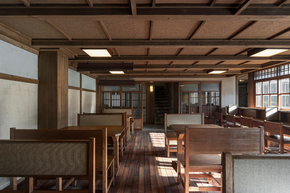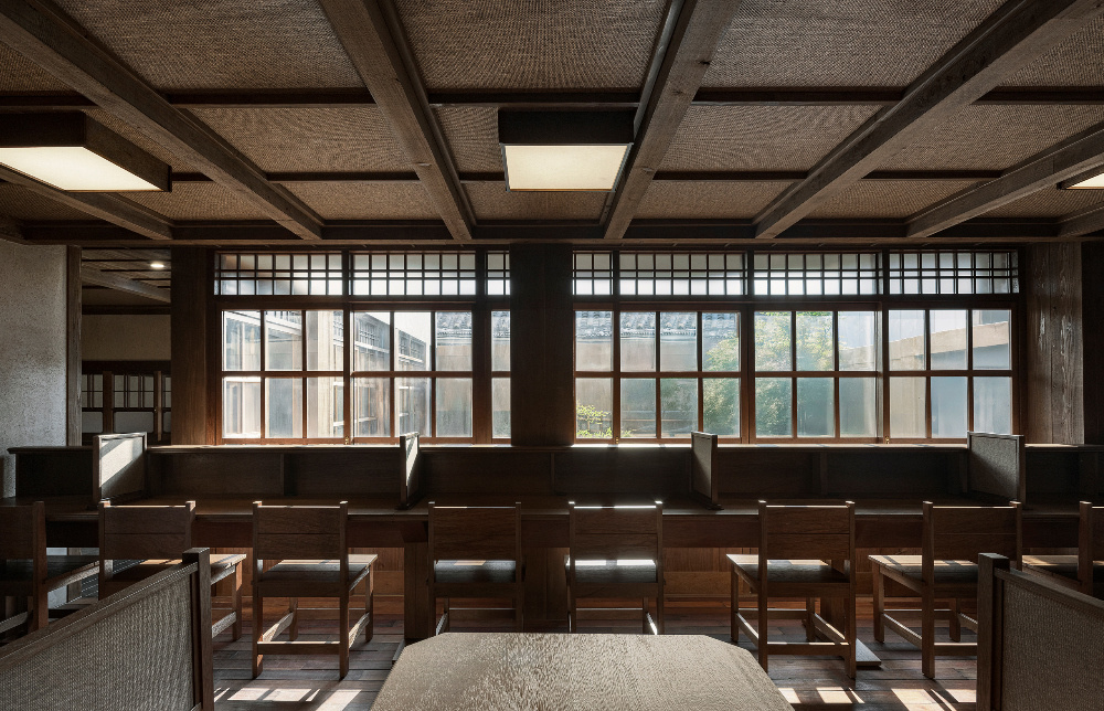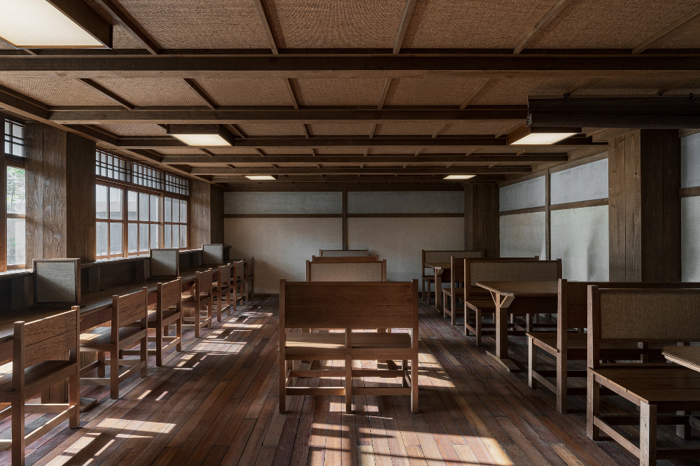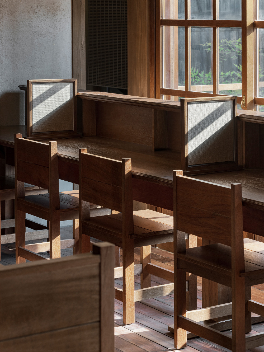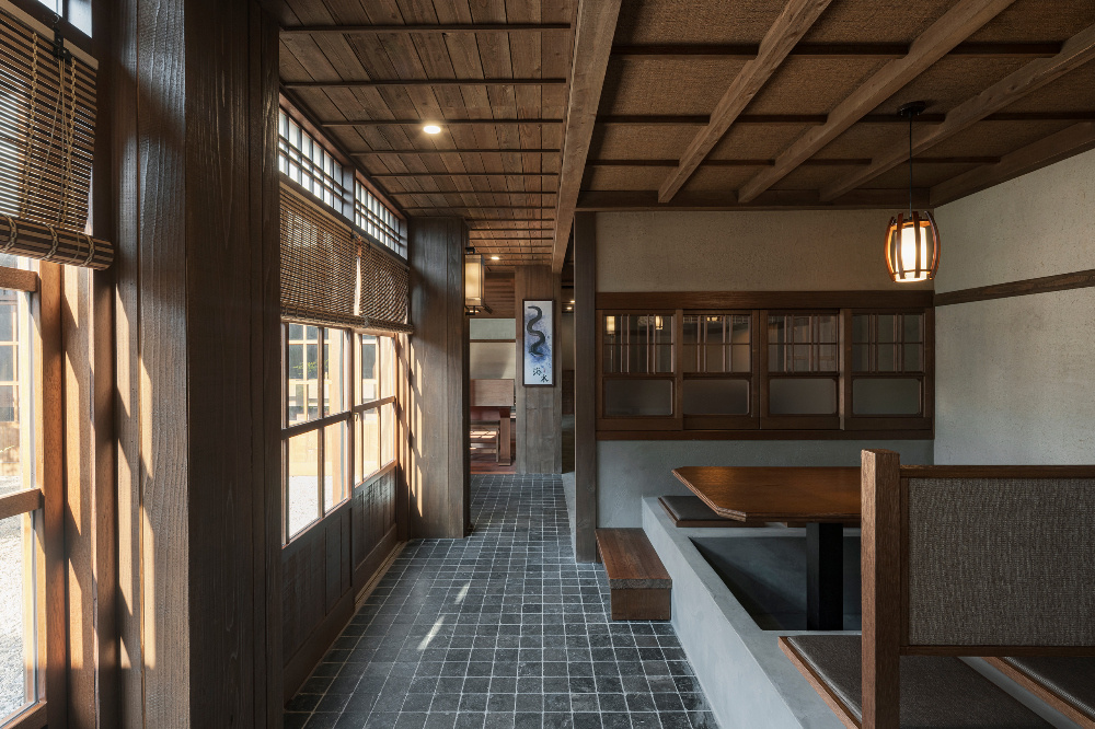 白天,大面积的木质格窗成为 “光影的画框”。阳光透过格窗的细缝,在木质地板与桌面上切割出明暗交错的几何图案,像是为空间 “镀上一层流动的金箔”。光线不仅照亮了空间,更让木的纹理、墙的肌理变得立体,食客坐在窗边,能清晰看到光影在餐食上缓慢移动,用餐也成了 “与时光共餐” 的仪式。