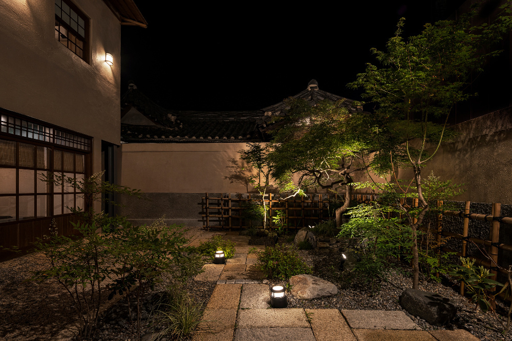 空间中央的庭院,是「해묵」的 “神来之笔”—— 它不仅是物理上的 “室内外过渡”,更是精神上的 “自然结界”。碎石铺地,几株姿态苍劲的绿植点缀其间,竹制围栏隐约围合,营造出日式枯山水的意境。用餐时,透过木质格窗望向庭院,绿植的绿意、碎石的素净,能瞬间抚平食客的浮躁。庭院的存在,让 “餐饮空间” 不再局限于 “室内的封闭场域”,而是与自然形成了 “呼吸的联动”:料理的香气飘向庭院,庭院的清风与光影又溜进室内,让每一口食物,都仿佛沾染了自然的气息。