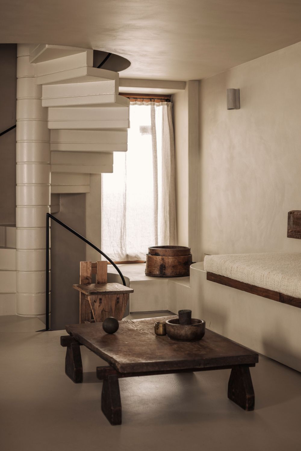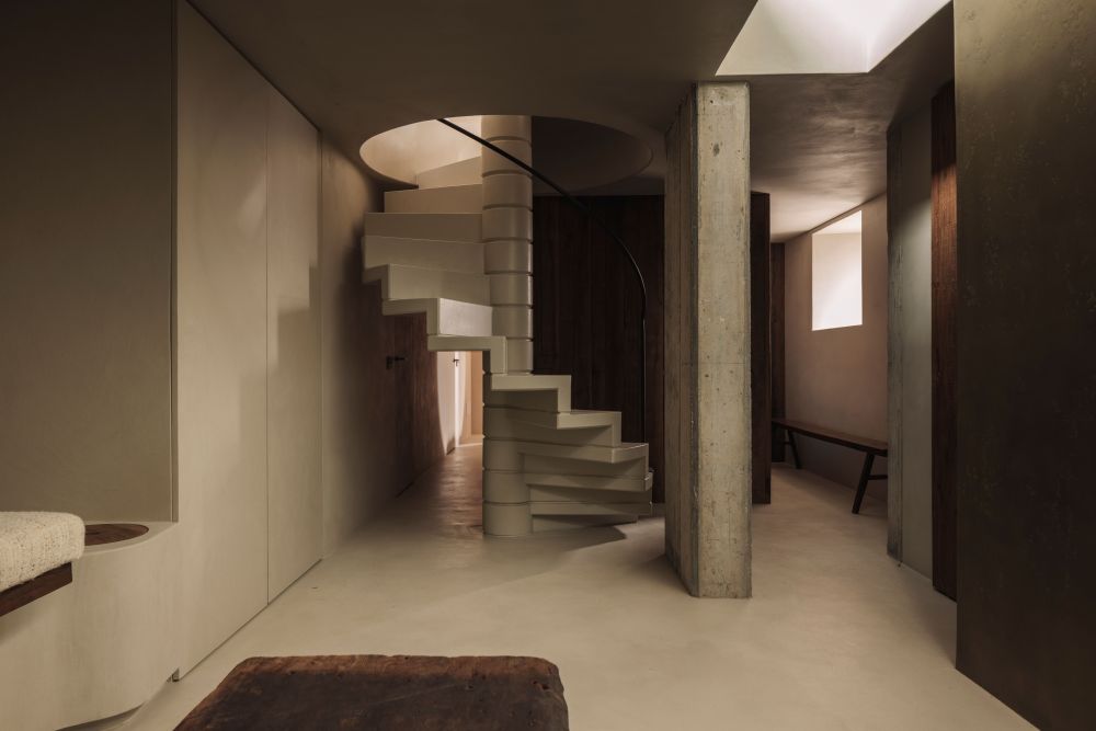 尽管各空间略显狭小,设计团队却通过三层结构与细节巧思,实现了功能与通透感的完美平衡。中央旋转楼梯贯穿全屋,成为空间的核心枢纽:从底层的儿童休息与睡眠区蜿蜒而上,抵达一楼开阔通透的大客厅与厨房,顶层则分布着主卧、浴室及客房,动线清晰且富有韵律。