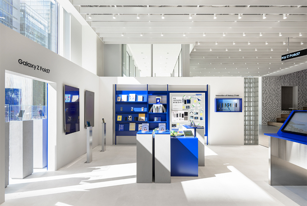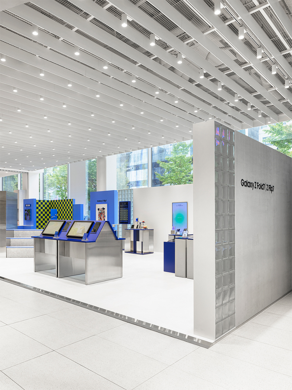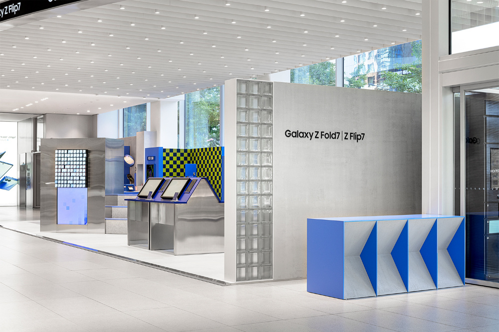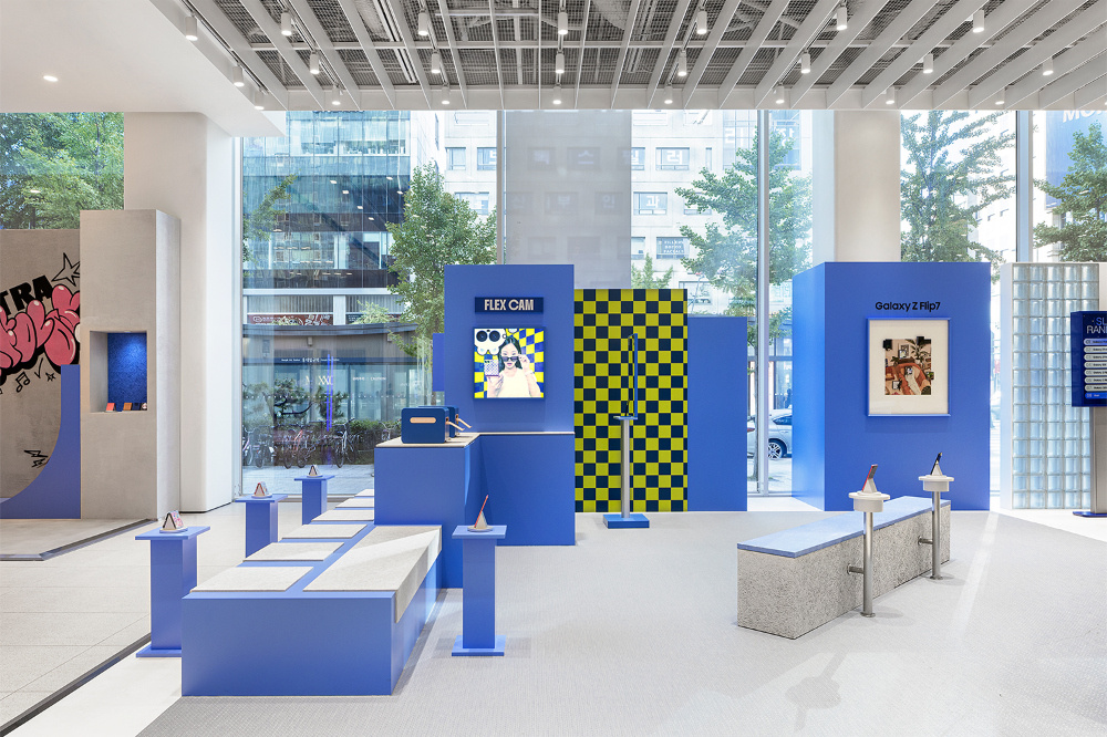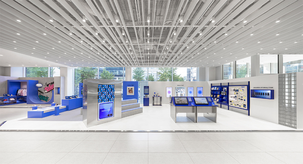 当消费电子零售从“产品售卖”转向“体验沟通”,三星Galaxy Z Fold7/Z Flip7手机体验店以“色彩为引、体验为核”的设计逻辑,完成了一次零售空间的叙事革新。ater.architects建筑事务所摒弃了传统电子卖场的炫技式表达,将折叠屏的“柔性科技”与三星的“品牌基因”转化为可触摸、可互动的空间语言,在高饱和度的科技蓝与温润材质的碰撞中,构建出“科技感与亲和力共生”的零售场域——这里不仅是产品展示的容器,更是品牌价值观与生活方式的传递载体。
