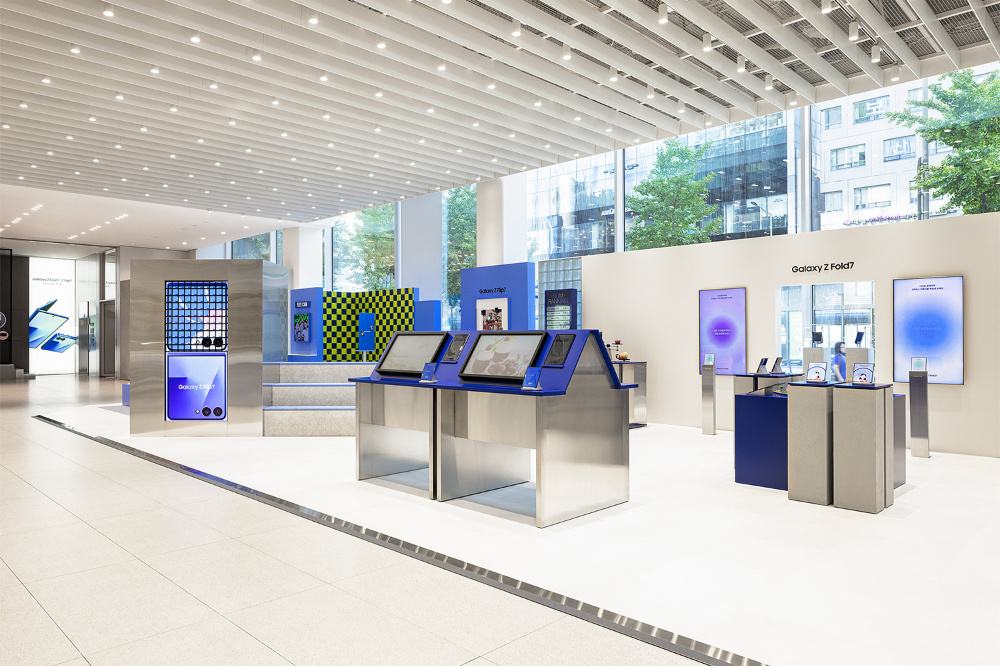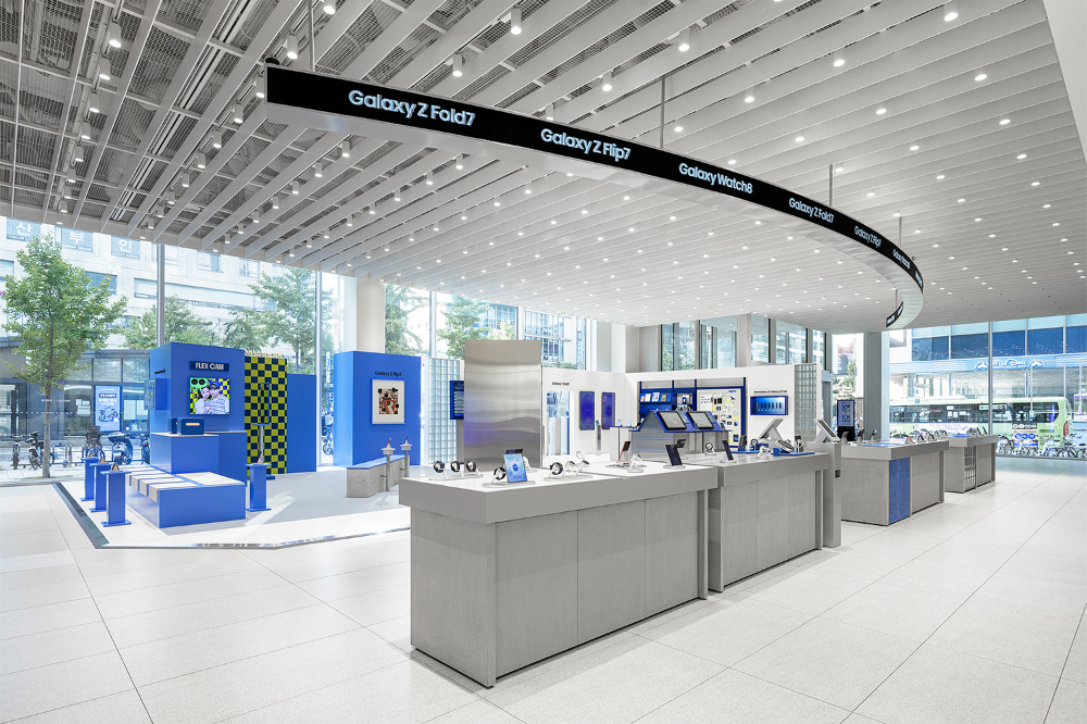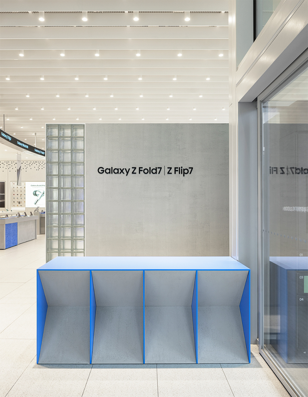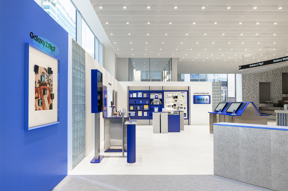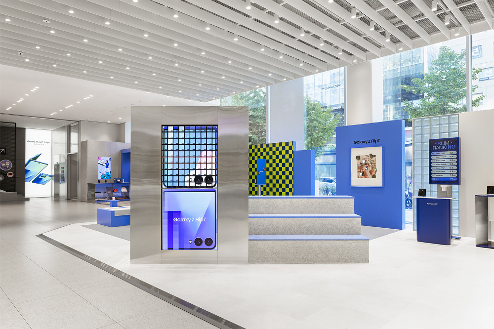 当消费电子零售从“产品售卖”转向“体验沟通”,三星Galaxy Z Fold7/Z Flip7手机体验店以“色彩为引、体验为核”的设计逻辑,完成了一次零售空间的叙事革新。ater.architects建筑事务所摒弃了传统电子卖场的炫技式表达,将折叠屏的“柔性科技”与三星的“品牌基因”转化为可触摸、可互动的空间语言,在高饱和度的科技蓝与温润材质的碰撞中,构建出“科技感与亲和力共生”的零售场域——这里不仅是产品展示的容器,更是品牌价值观与生活方式的传递载体。
