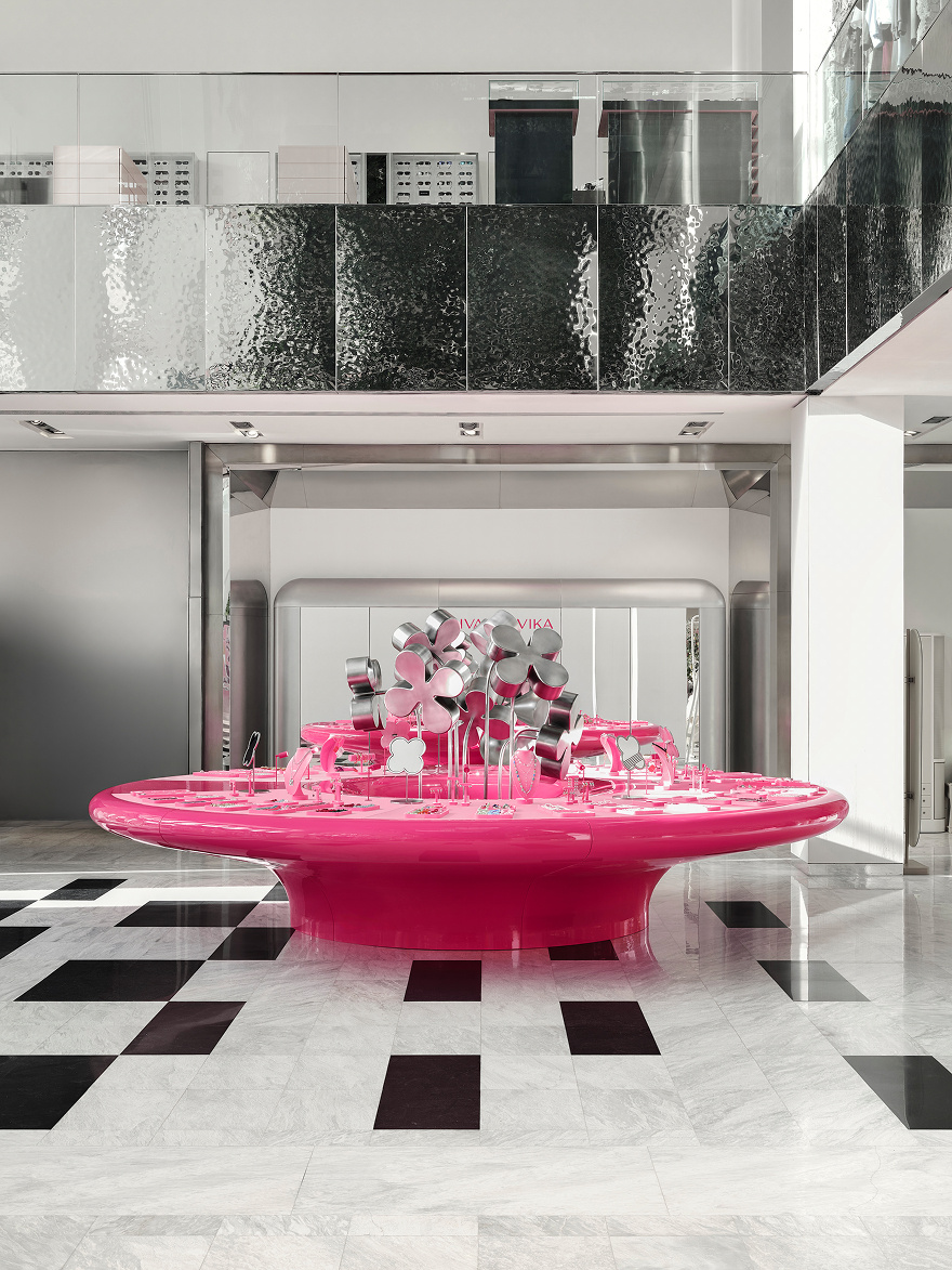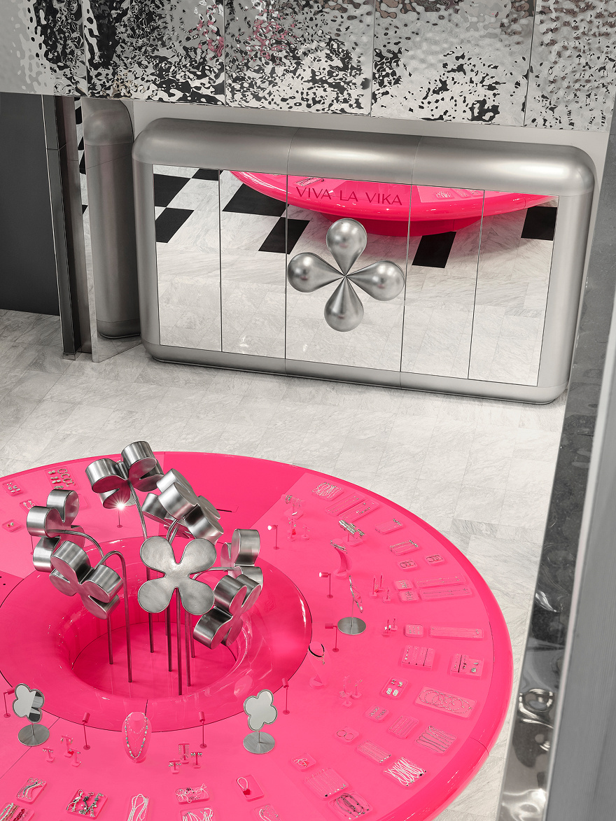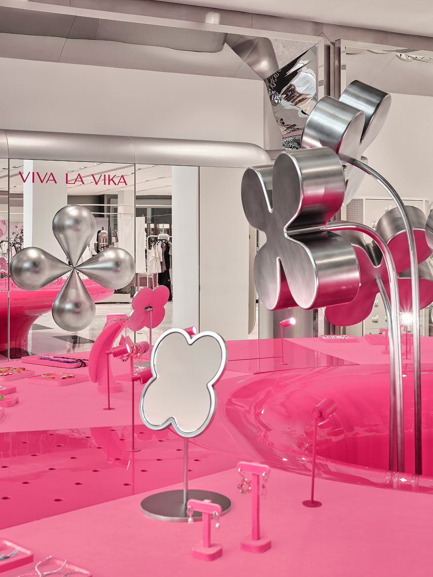 当首饰快闪店设计不再满足于 “单纯售卖商品”,而是转向 “营造沉浸式体验”,VIVA LA VIKA 快闪店以极具视觉冲击力的超现实设计,为饰品零售领域带来了全新的叙事可能。它用大胆的色彩、未来感的材质与艺术化的装置,将 “购物” 升维为 “一场与美学的互动实验”。