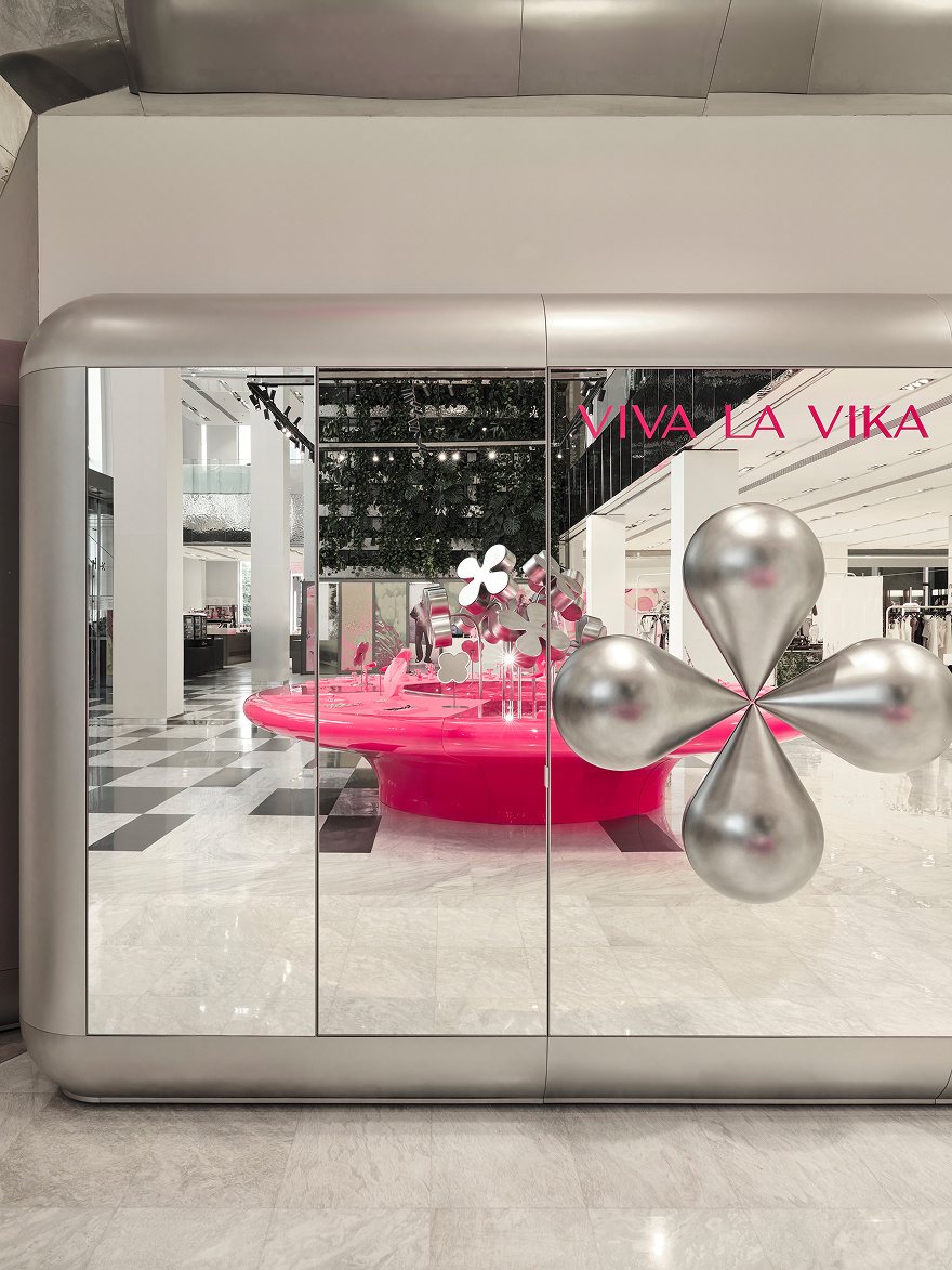 VIVA LA VIKA 的品牌名本身就带着 “活力、张扬” 的气质,快闪店的空间设计,正是对品牌精神的具象化传递: