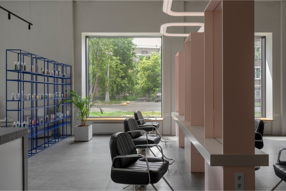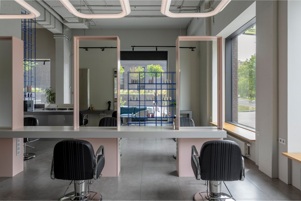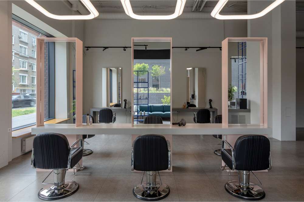 以色彩结构与光影构建轻时尚美发体验的理发店设计