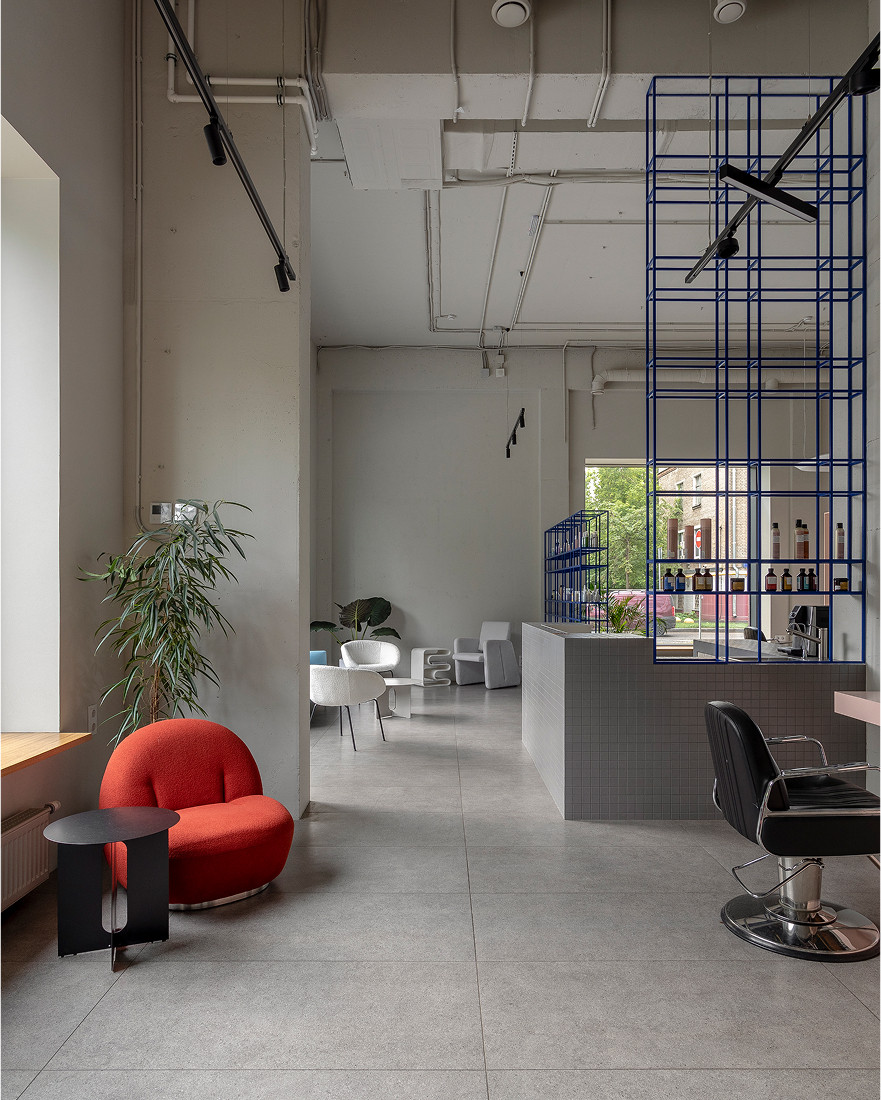 该理发店的设计,本质是一场 “美发服务” 与 “空间美学” 的深度融合实验。它不再将 “美发” 视为 “单一的造型行为”,而是通过色彩、结构、光影、材质的协同,将 “美发过程” 转化为 “沉浸式美学体验”—— 顾客踏入空间的瞬间,便从 “需要美发” 的功能性需求,升级为 “享受美学空间” 的精神性需求。从行业视角看,这种设计思路为美发店提供了 “差异化竞争” 的路径:在 “技术服务趋同” 的当下,通过 “空间美学” 打造品牌的 “独特记忆点”,让顾客因 “喜欢空间” 而选择品牌,甚至将 “打卡美发店” 视为一种 “时尚生活方式”,最终实现 “从服务场所到美学目的地” 的品牌升级。