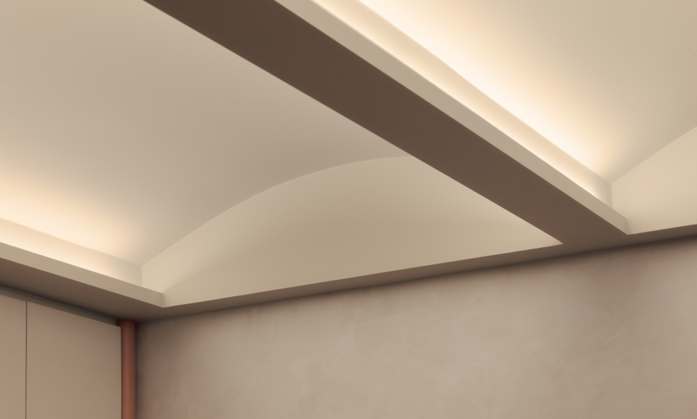 弧形天花板和环境照明提升了普拉提室的体验,旨在与用户的肢体语言一起移动。Reformer室被高大的反光镜和橱柜环绕,日夜都将用户和设备有序地排列在一起。