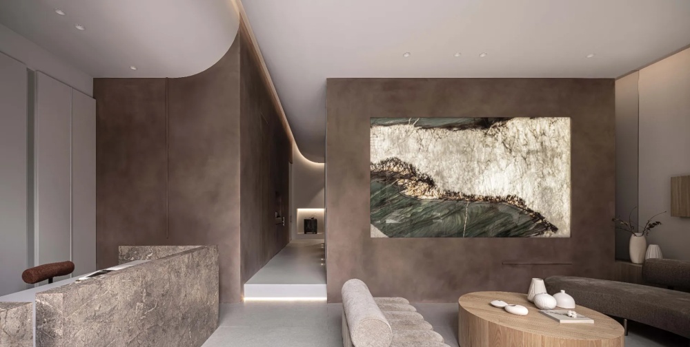 诊所按功能分为前后两区,灰白基底上,木纹理、红砖色漆、天然石材等材质贯穿始终,串联起大地主题。一楼前半是候诊区,不仅是放松的等候空间,更藏着温暖细节:业主父母赠送的奢石作端景,老古董家具融入当代设计,让空间有了时间厚度与家庭情感。从一楼后半到二楼是诊疗区,设计师把诊间、消毒室等机能空间当作 “散落的盒子” 重组。独立诊间不用封闭设计,而是通过 “拖开式” 量体留足光线与视线,既保隐私又不压抑;灯光用 “点、线、面” 搭配,走在其中能感受到各区域既分离又串联的巧思。