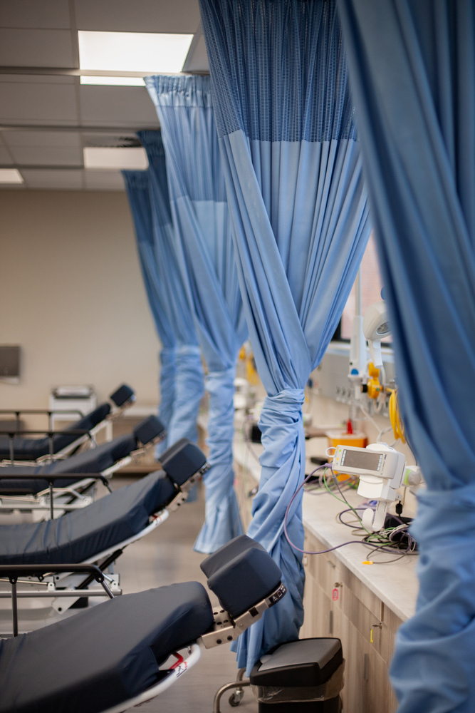 与传统医院不同,该设施提供了一个温馨且直观的环境。天然材料与温暖色调相结合,再加上宁静的景观,有助于减轻患者的焦虑。设计旨在最大限度地减少压力,特别是针对视障人士 —— 将漫长的等待时间转化为连续的流程,并通过清晰的路径方便行动。专属的医护人员通道提高了诊疗效率,而一个高架的中央管理岛能够实现对患者的实时监控。
