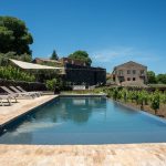 毗邻该区域的是一个圆形下沉式火坑,为天幕下的聚会提供了一个私密空间。游泳池从这一区域延伸至主套房,内设巴哈架和热水浴缸,供人们放松身心。