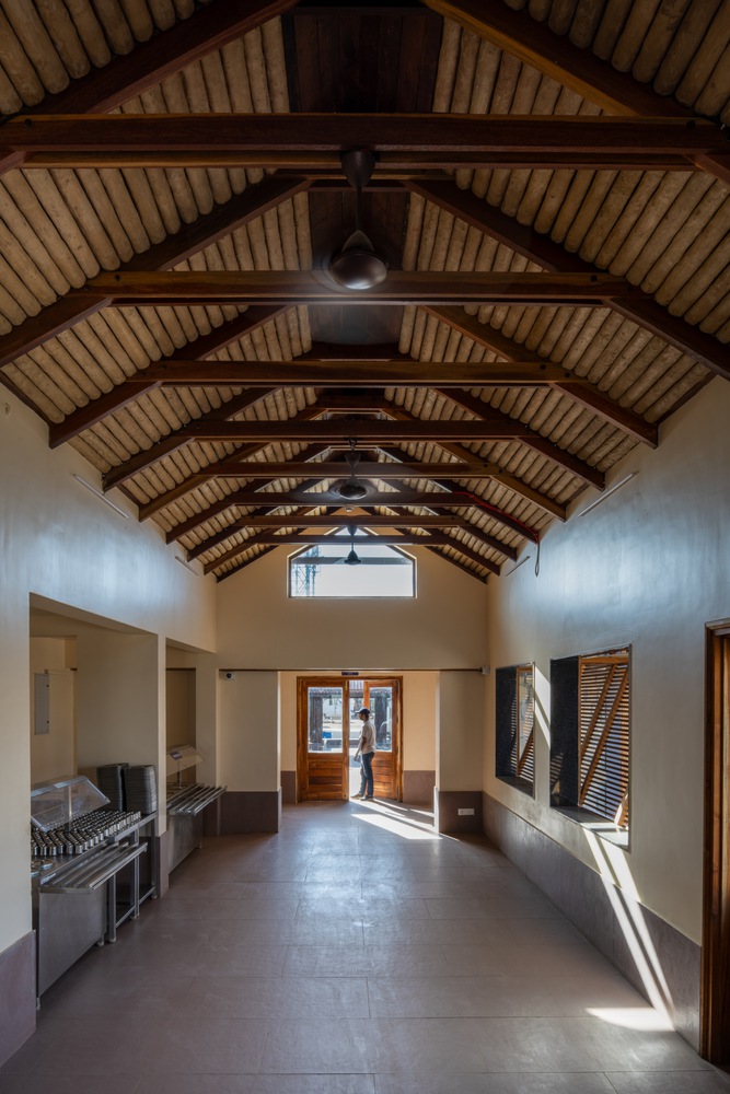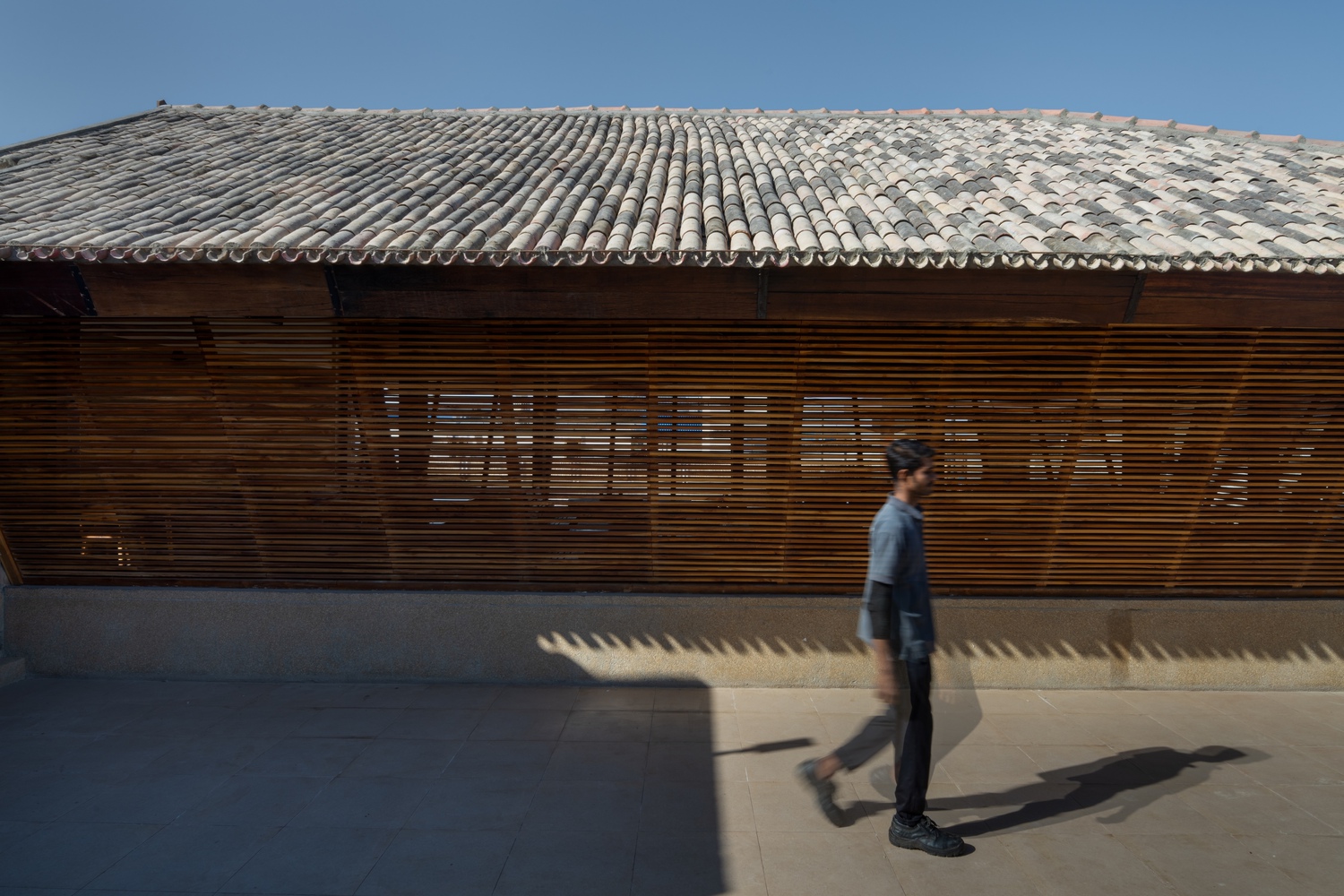 木质格栅和黏土卷的制作是与 Karigar Shala 信托基金合作完成的,这是一个教育组织,为古吉拉特邦及邻近地区的失学青年提供传统建筑技术培训。这种合作不仅为学生提供了宝贵的技能,还确保了当地专业知识和手工艺的运用。餐厅的家具,包括椅子和桌子,也是由 Karigar Shala 的一名毕业生制作的,他现在已成为一名木匠大师。