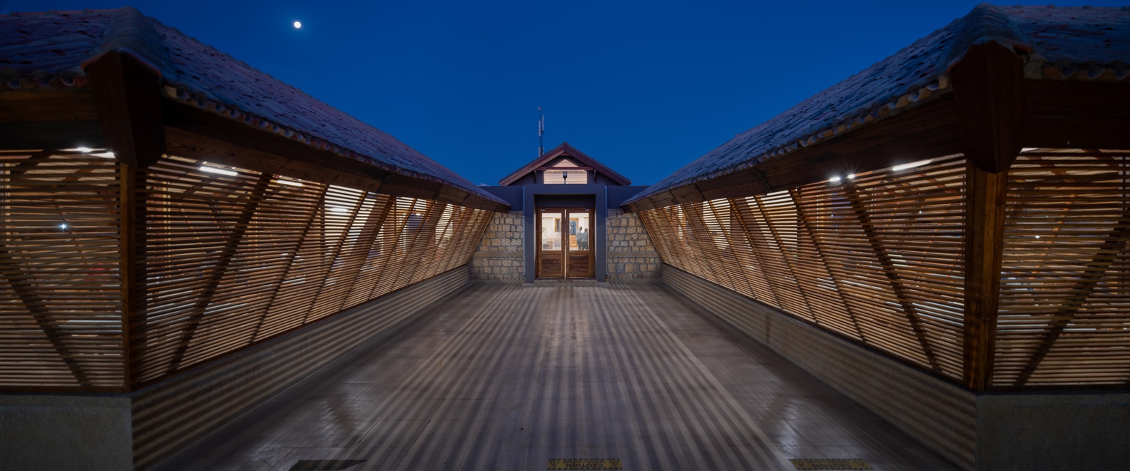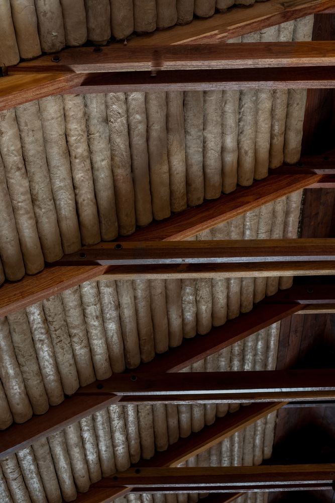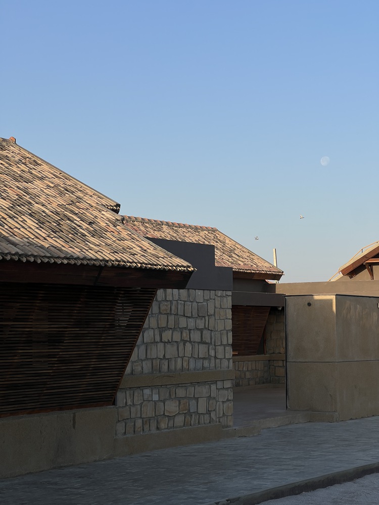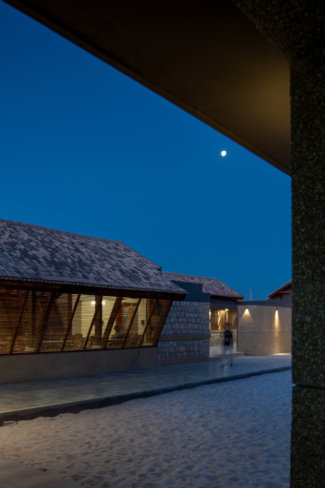 屋顶是该项目的关键元素,由来自拆船场的回收木材建造而成。这种可持续的做法延长了材料的生命周期,并重新利用了宝贵的资源。屋顶采用了创新的黏土块隔热系统,彰显了该项目对环境责任的承诺。黏土块由羊毛、废弃黄麻袋、淤泥、石灰和回收木栓组成,具有出色的隔热性能,可缓解沙漠的酷热。羊毛的使用有助于扶持当地牧民,重新激发对其产品的需求,支持了这一陷入困境的地方产业。黏土卷不仅提供了隔热效果,还为屋顶增添了美丽的手工质感,呈现出柔和的土色调。