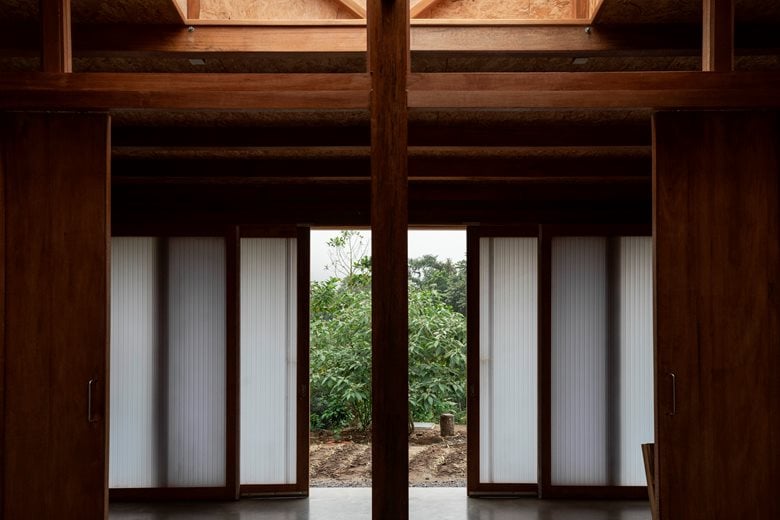 房屋的结构组装由当地工匠完成。工匠们通过制作每一处节点的模型,逐步细化设计细节,推动项目落地。设计构想与施工过程中的突发状况、预算限制及意外情况相互碰撞,最终催生出层次丰富的细节设计,使这座建筑的价值超越了最初的设计构想。