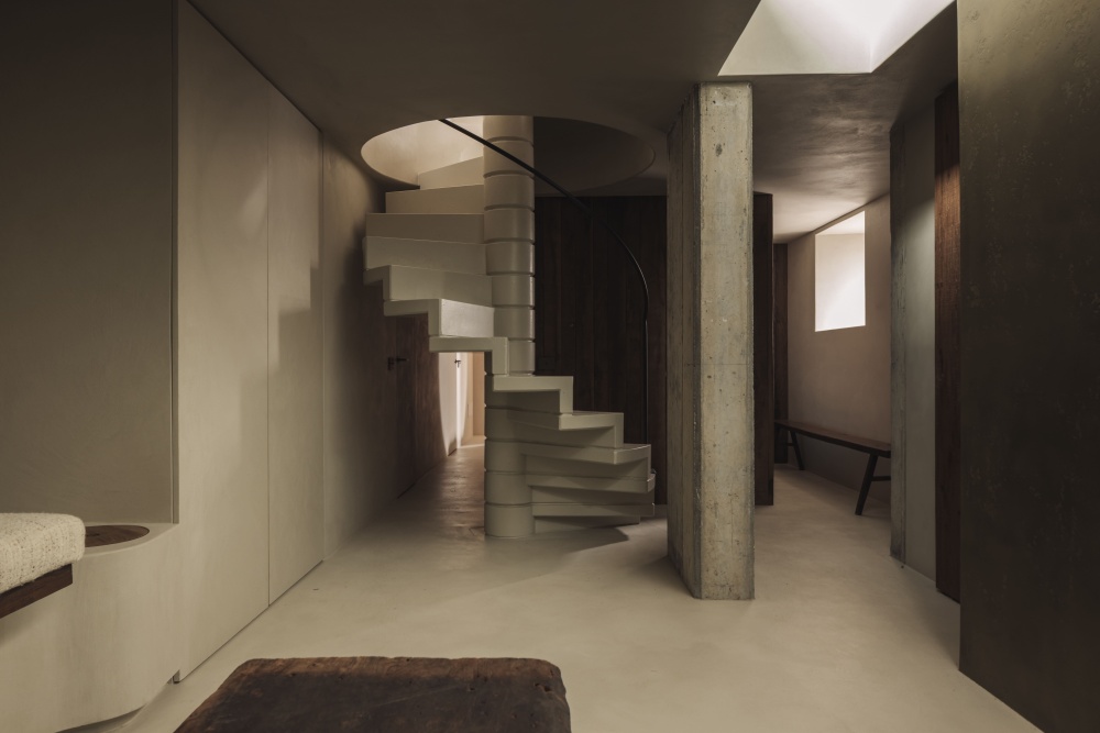 Maison Osaïn 的设计灵魂,根植于创始人托马斯与安对生活本质的深刻思考。受全球疫情的启发,二人将对营养、心态及整体健康的认知深度融入设计体系,形成了 “健康且可持续” 的核心创作理念。团队从约鲁巴教的自然崇拜中汲取灵感,坚信建筑应是人与自然和谐共生的载体,而非孤立的存在;同时坚持选用天然材料,联合艺术家为老旧建筑注入新的生命力,让每一处改造都既尊重历史肌理,又贴合现代健康生活的需求。这种理念贯穿了蒙塔尼亚之家的翻新全程,成为空间设计的隐形主线。