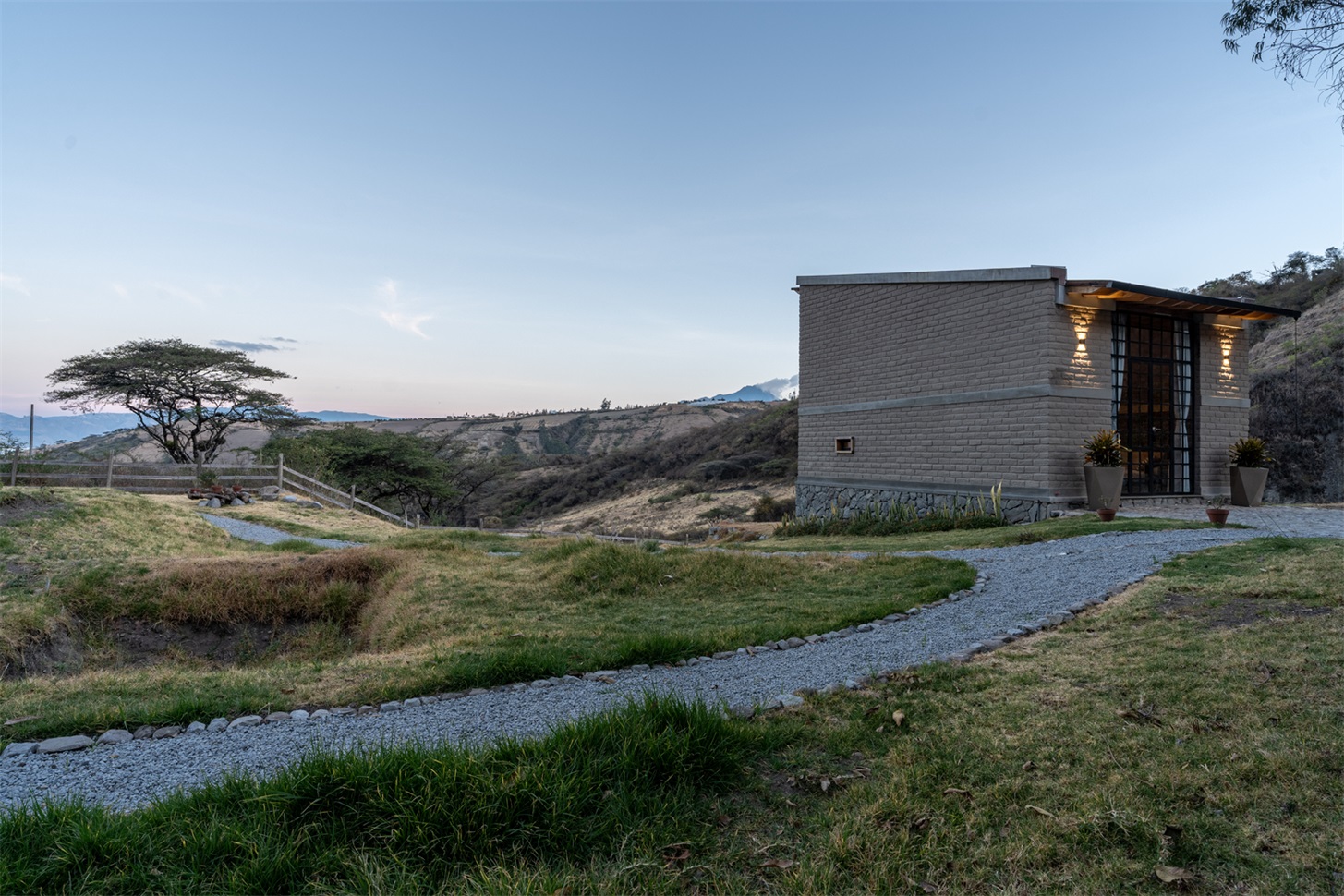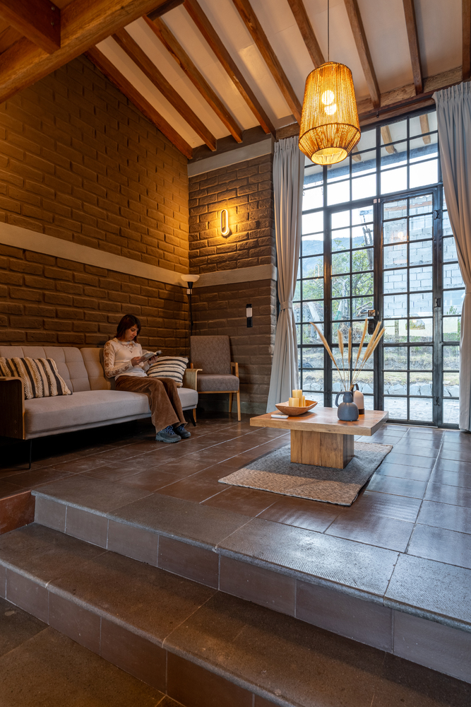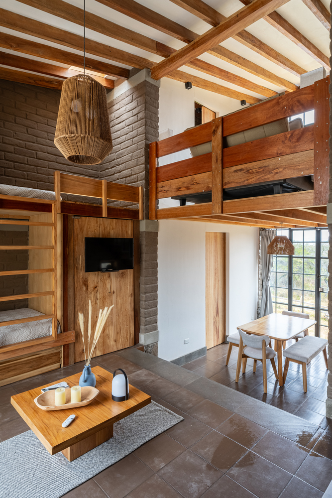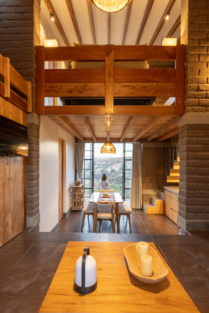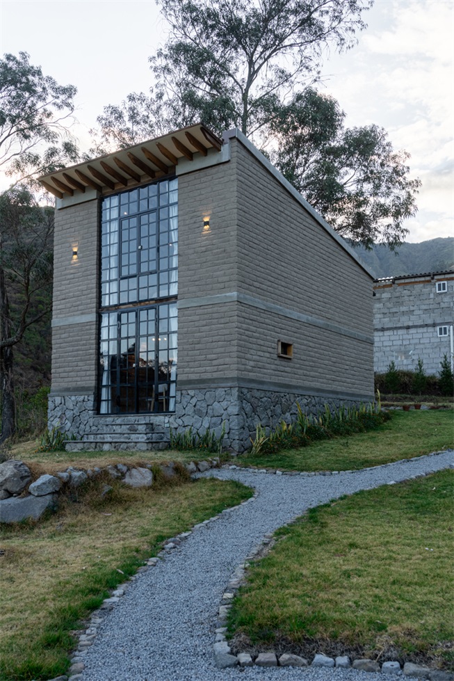 土坯的使用并非对传统的简单模仿,而是以当代语言重新诠释,更新其表现形式。结构简洁干净的线条与大面积窗户结合,使小屋在视觉上向外界开放,将景观融入空间体验的核心。这种视觉连接通过房屋的朝向得到增强,使用者既能欣赏周边的优越景致,自然光也能涌入室内空间,营造明亮宁静的氛围。