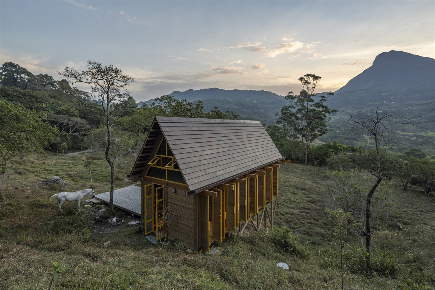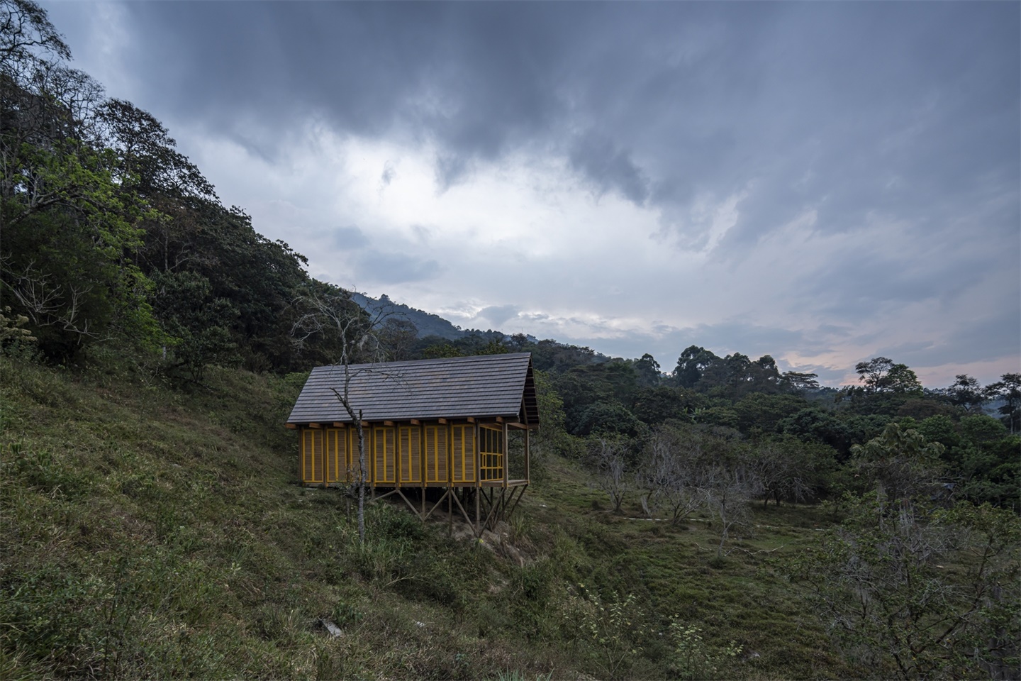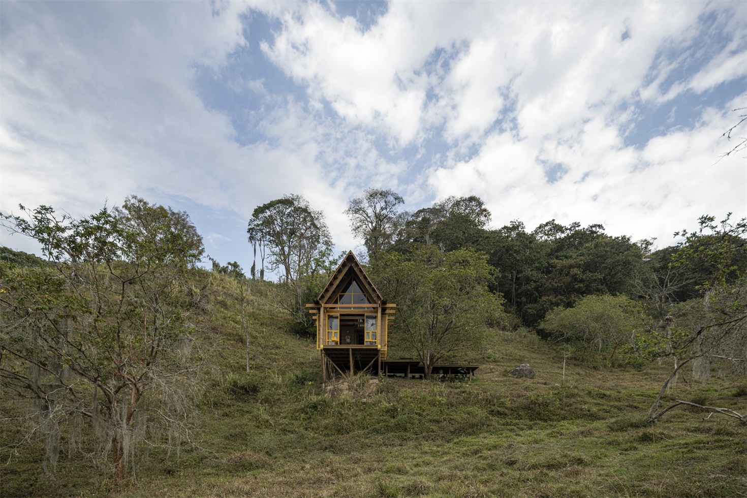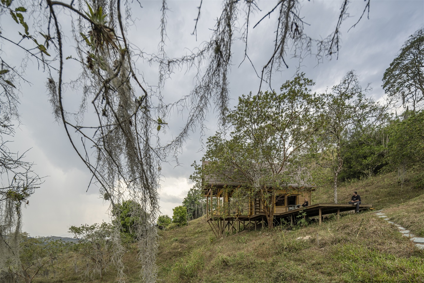 该木屋设计位于数百万年前,一块石头从地心坠落,凭借生命的力量穿过了的布拉沃山。许多年前,殖民时代来临,森林被砍伐,人们为自己勾勒出一片多产的 landscape。咖啡种植和采矿活动开始占据这片土地,生态系统逐渐枯竭。