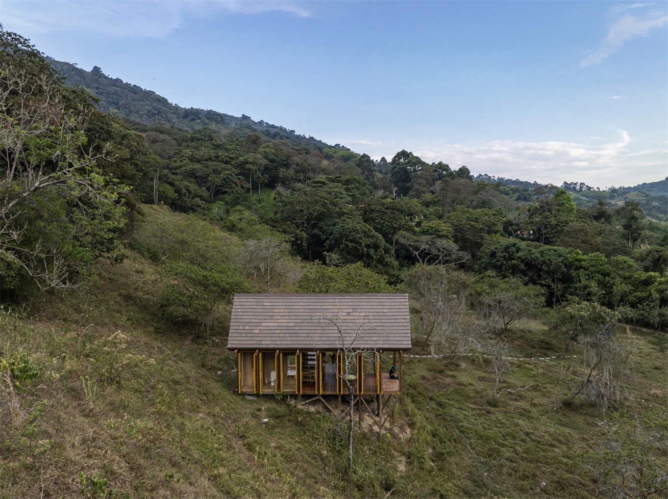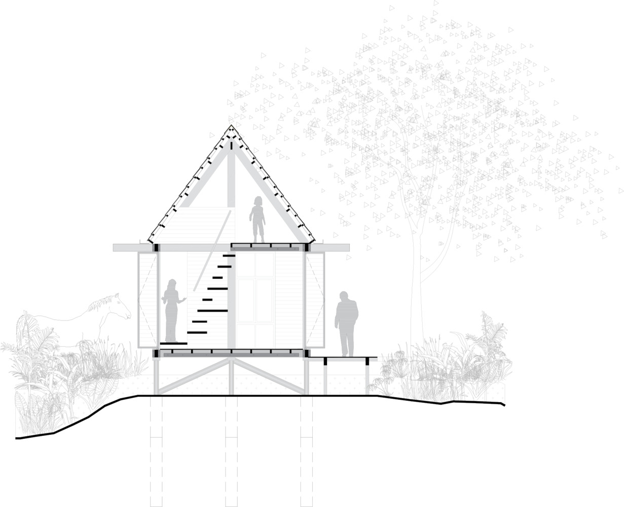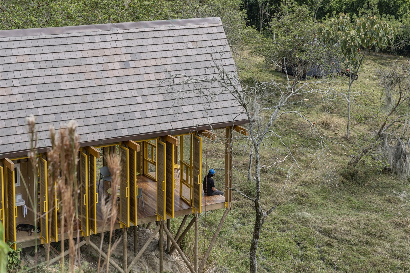 该木屋设计位于数百万年前,一块石头从地心坠落,凭借生命的力量穿过了的布拉沃山。许多年前,殖民时代来临,森林被砍伐,人们为自己勾勒出一片多产的 landscape。咖啡种植和采矿活动开始占据这片土地,生态系统逐渐枯竭。