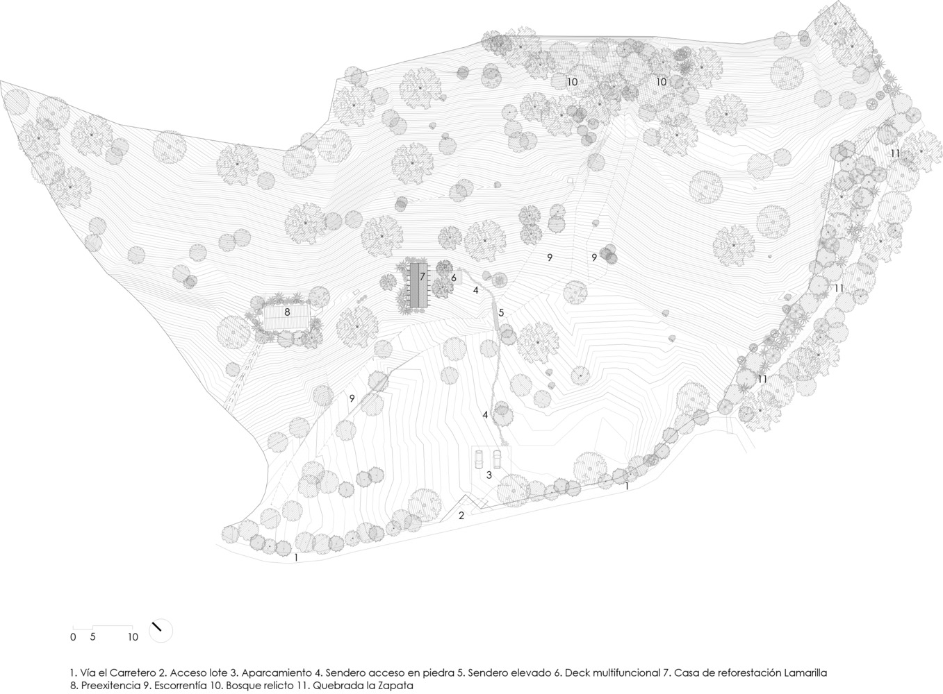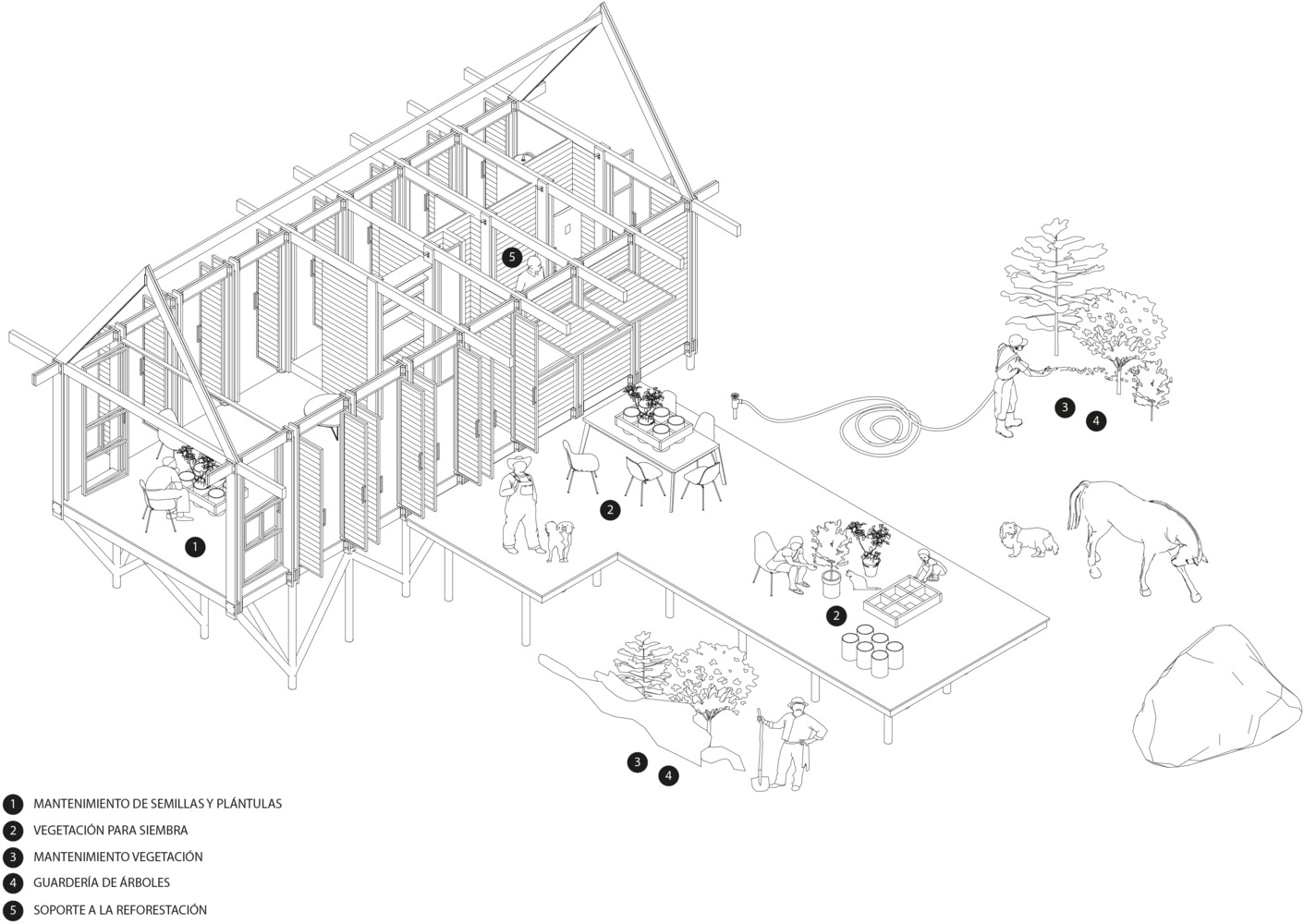 拉马里利亚植树屋是一种策略,它让我们能够在此居住,从而开展植树、维护和保护生态系统的工作。这种建筑可以在任何指定的植树区域建造,为居住者提供一个在自然中生活和放松的空间。它是一种可持续发展的模式,促进自然生态系统的恢复和保护。