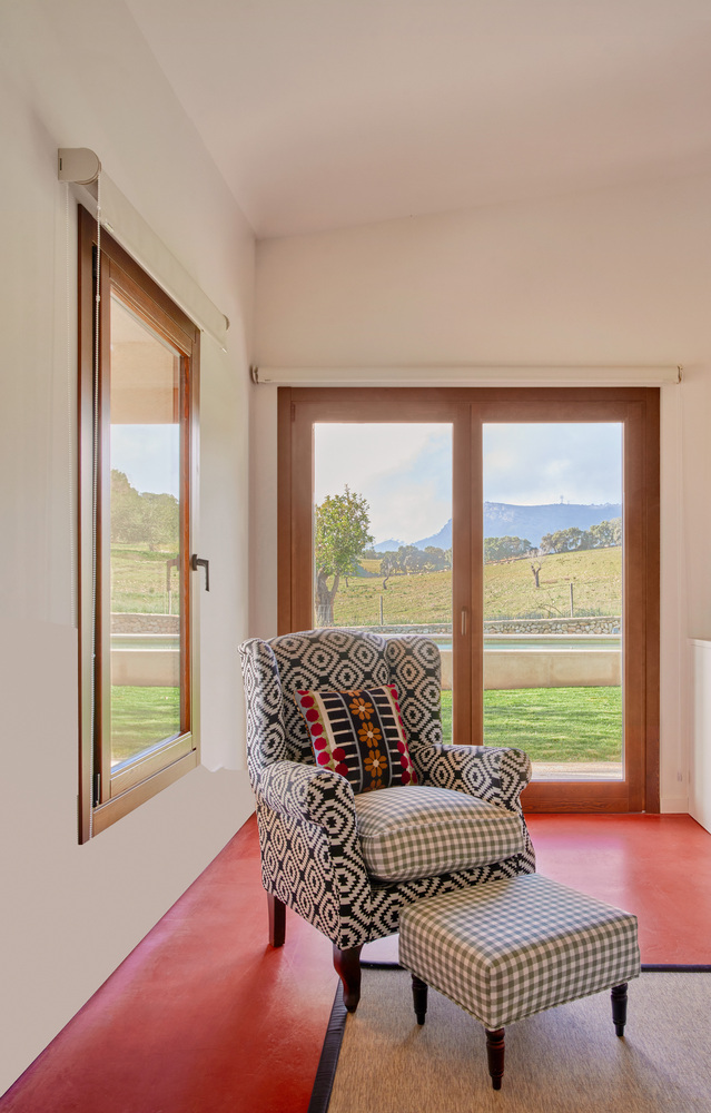 每个露台都设有独立的客厅:北侧客厅适合内省(阅读与小型火炉),南侧客厅则外向开放(餐桌交流与闲聊)。最终,位于离入口最远两极的是卧室:供朋友、孩子使用的房间,以及主卧室,所有房间都被卡萨・塞斯塔多斯周围角豆树林框选出的深景所环绕。