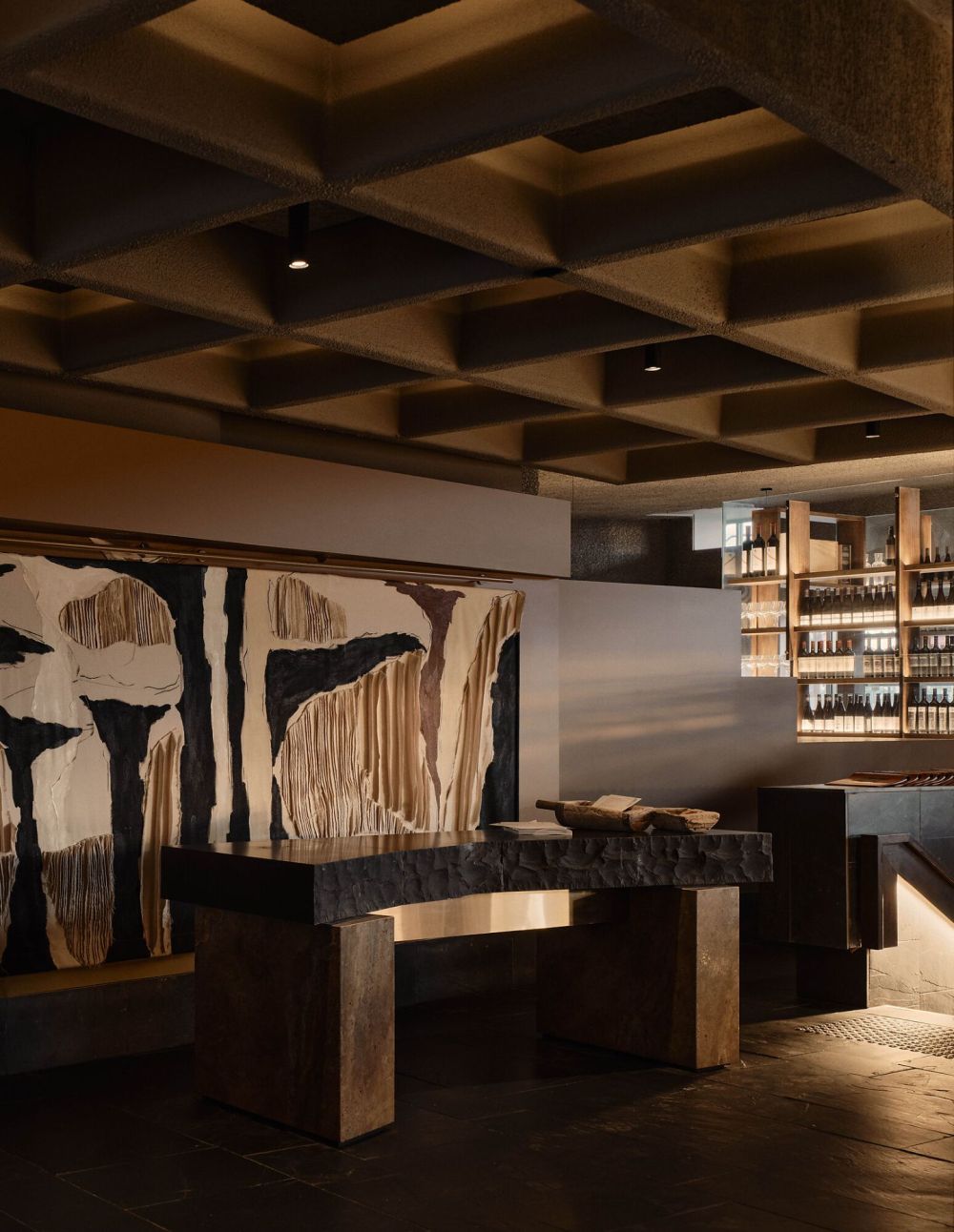 黄金海岸的餐饮设计,似乎天然与 “海景露台、阳光倾泻” 绑定。但 Norté 的设计从一开始就选择了截然不同的路径 ——J.AR 设计事务所创始人贾里德・韦伯(Jared Webb)直言:“我们刻意舍弃海景,转而打造一个内敛且富有氛围的内部空间,为食客隔绝昆士兰州的烈日。” 这种 “反其道而行” 的魄力,源自对 “南美风味 + 沉浸式体验” 的深度思考:南美美食的热烈与复杂,需要一个同样富有层次、能调动多重感官的空间容器,而不是被海景的 “清新感” 稀释。设计灵感锚定路易斯・巴拉甘的现代主义时代,将其对色彩、光影、材质的极致把控,转化为 Norté 的空间语言。餐厅不再是 “海岸风光的附属品”,而是以 “深邃空间感、丰富质感、戏剧性克制” 为核心,成为独立于海景的 “风味剧场”。