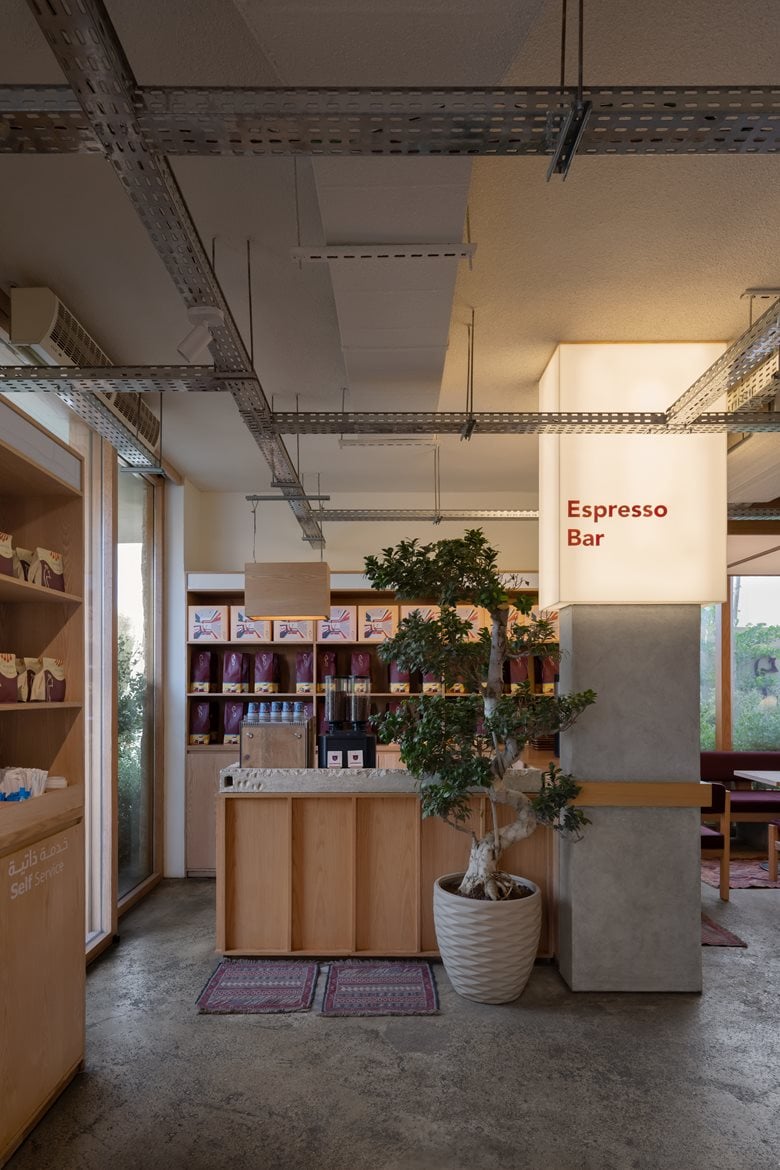 利雅得(Riyadh)孔雀咖啡馆(Peacock café)项目,是 KIDZ 工作室首次在沙特阿拉伯开展的设计实践,同时也延续了一个本土咖啡品牌的发展故事 —— 该品牌的起点,是位于小城哈伊勒(Ha’il)的一座烘焙工坊。品牌创始人的目标远不止打造一处咖啡销售点,而是希望创造一个新的城市吸引力节点:一座能为社区注入活力、让人们愿意反复到访的咖啡馆。