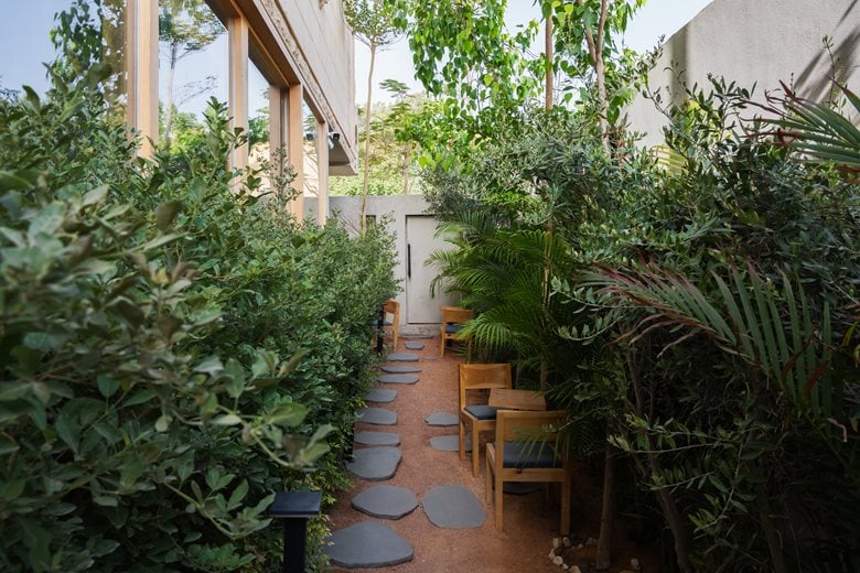私密休憩区:“庭园” 旁设置了休闲 lounge 区,进一步强化私密感;