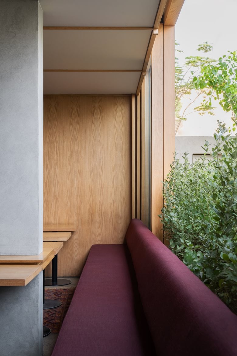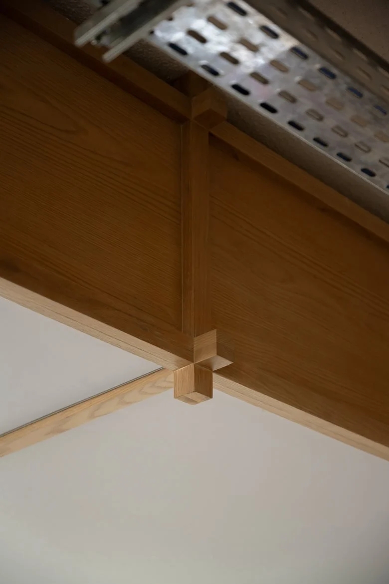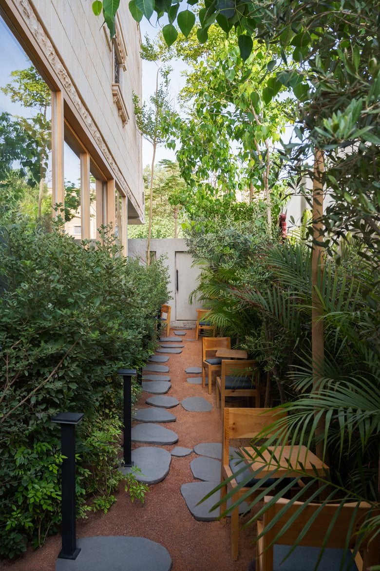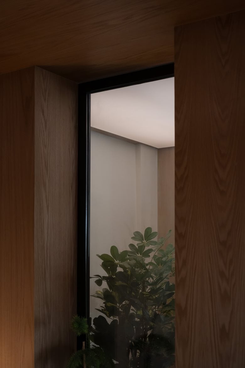 项目概念的核心指引,源于客户对 “温馨、如家般氛围” 的追求。这一诉求与 “日式庭园” 的建筑理念不谋而合 —— 在日式庭园中,木材不仅是建筑材料,更承载着象征意义;空间的核心并非某个具体物体,而是一种情绪与感受的传递。基于这一理念,设计团队巧妙地将室外连廊与带有结构柱的复杂室内几何形态柔和融合,将原本可能被忽略的角落,转化为项目的情感核心区:一个由玻璃围合、绿植点缀、光线柔和弥散的空间。