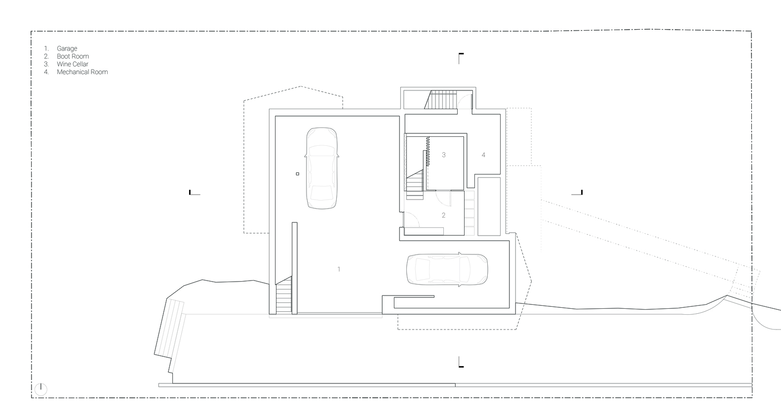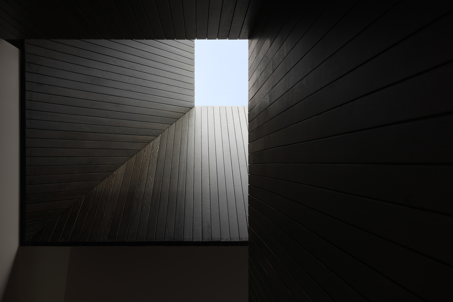 倾斜的墙壁迫使人们在房屋内的移动具有电影般的效果。每个转弯处都能瞥见风景、空间和光线。由于大多数空间具有多方面的解读,我们努力模糊门和走廊等常规功能标志。家具故意稀疏且具有雕塑感,并且在存在的地方,暗示了多种使用方式。