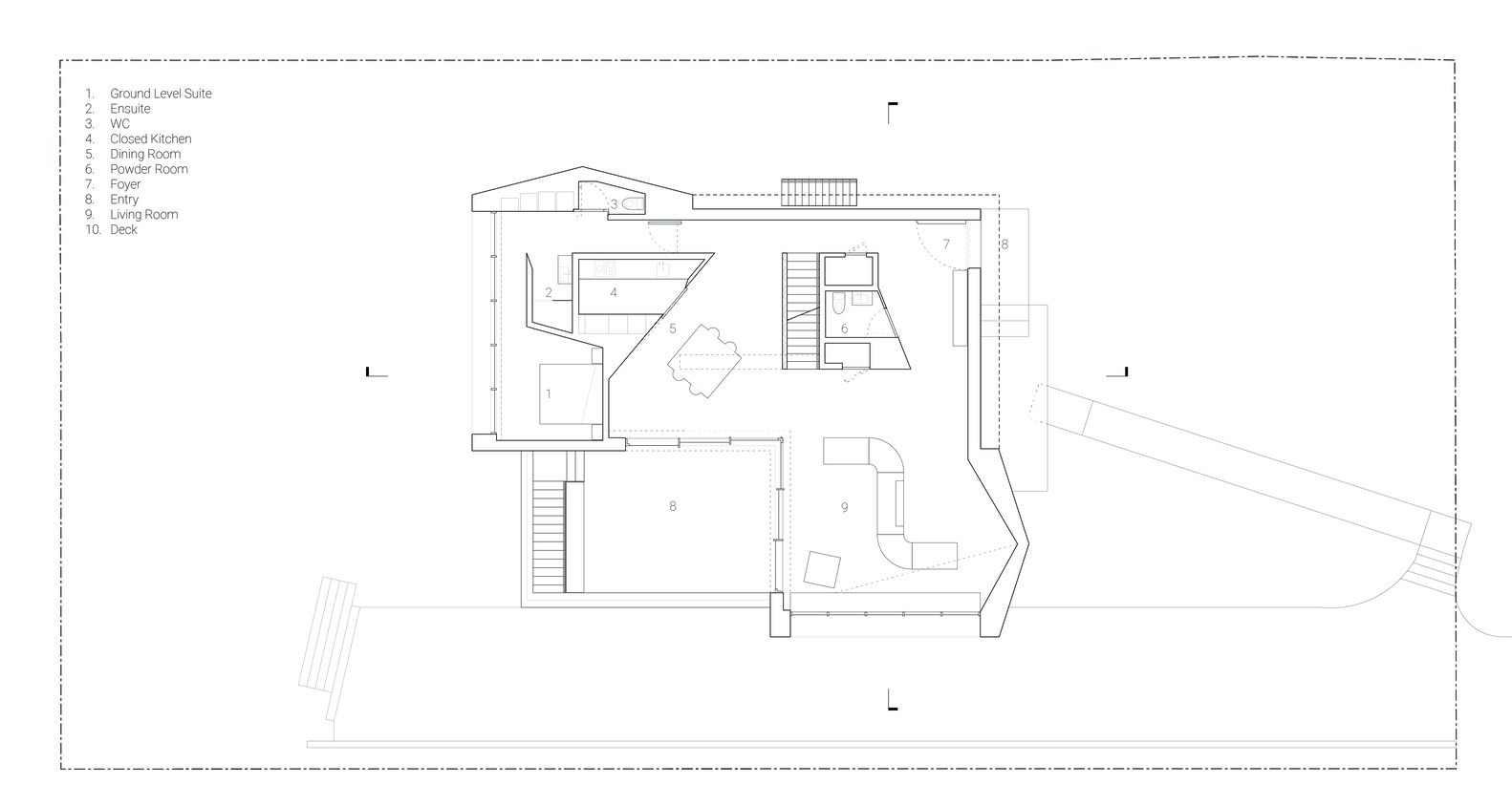 在一个不寻常度假别墅设计案例中,我们的客户在施工中途联系我们,要求重新构思一栋房屋,因为她从父母手中接管了该项目的管理工作。作为年轻人,她带来了新的想法和不同的视角。她要求我们批判性地重新思考住宅设计中常见的功能用途和相互关系。