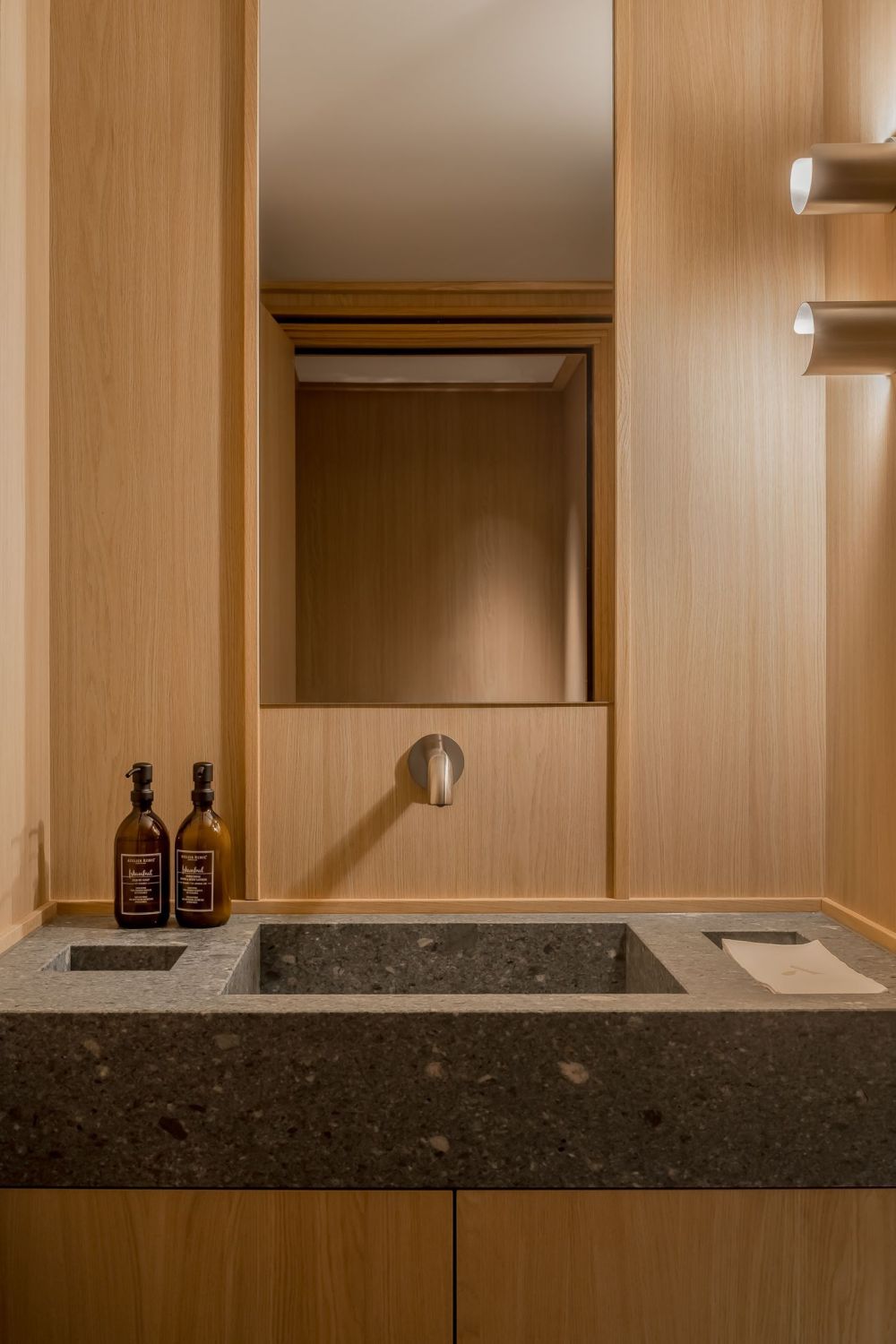 本案的设计价值,在于它超越了 “餐饮空间” 的功能属性,将其打造为 “沉浸式感官剧场”。设计团队通过空间布局的节奏化、材质设计的层次化、灯光设计的氛围化、细节设计的仪式化,让客人在踏入空间的瞬间,便进入一场 “视觉、触觉、听觉、味觉” 的多感官盛宴 —— 视觉上,是材质与色彩的美学享受;触觉上,是木材与织物的质感体验;听觉上,是空间声学与环境音乐的和谐;味觉上,是美食与美酒的味觉狂欢。 这种设计范式为高端餐饮空间提供了全新思路:优秀的餐饮设计不应只关注 “食物本身”,而应将 “空间” 视为 “餐饮体验” 的重要组成部分,通过设计的力量,让空间与食物、服务共同构成 “完整的用餐叙事”。本案的成功,证明了 “材质交响” 与 “空间叙事” 的结合,能够为餐饮空间注入持久的吸引力与竞争力,让客人在 “用餐之外”,更收获一份关于 “空间美学” 的记忆。