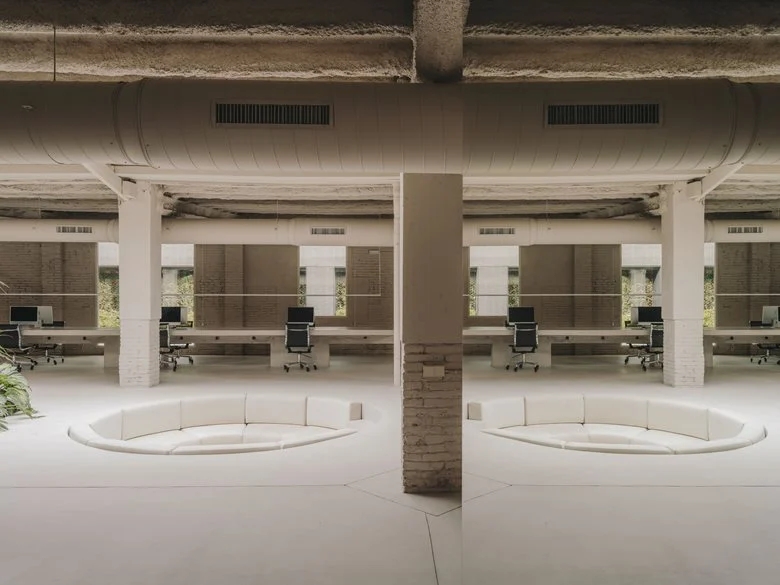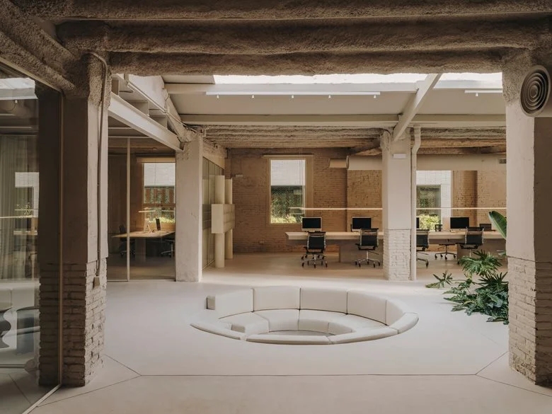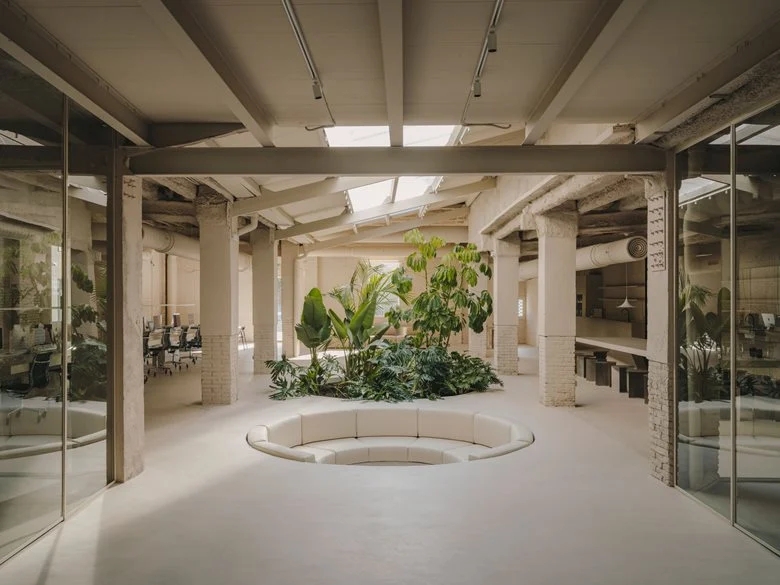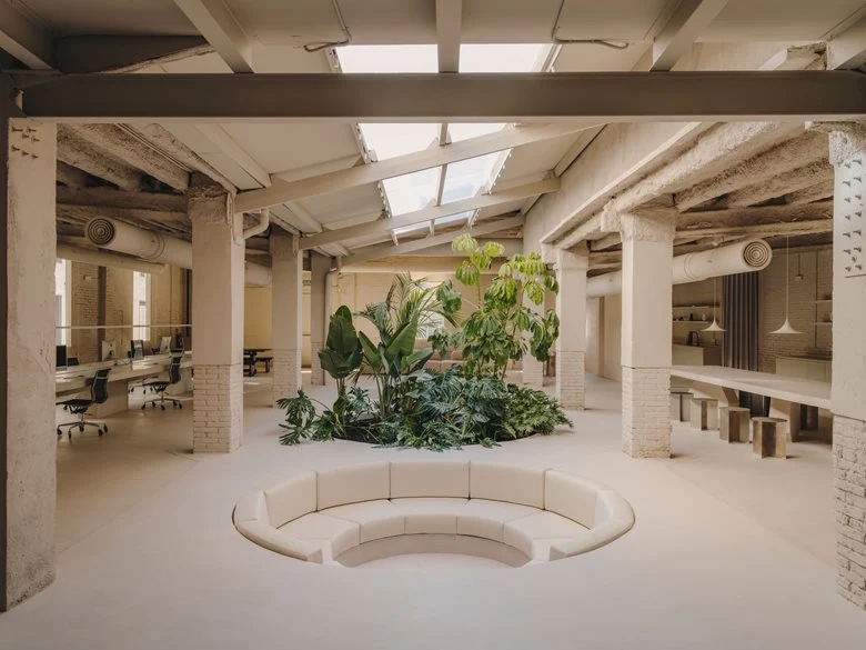 围绕室内花园布置不同区域联想罗马庭院的办公室设计