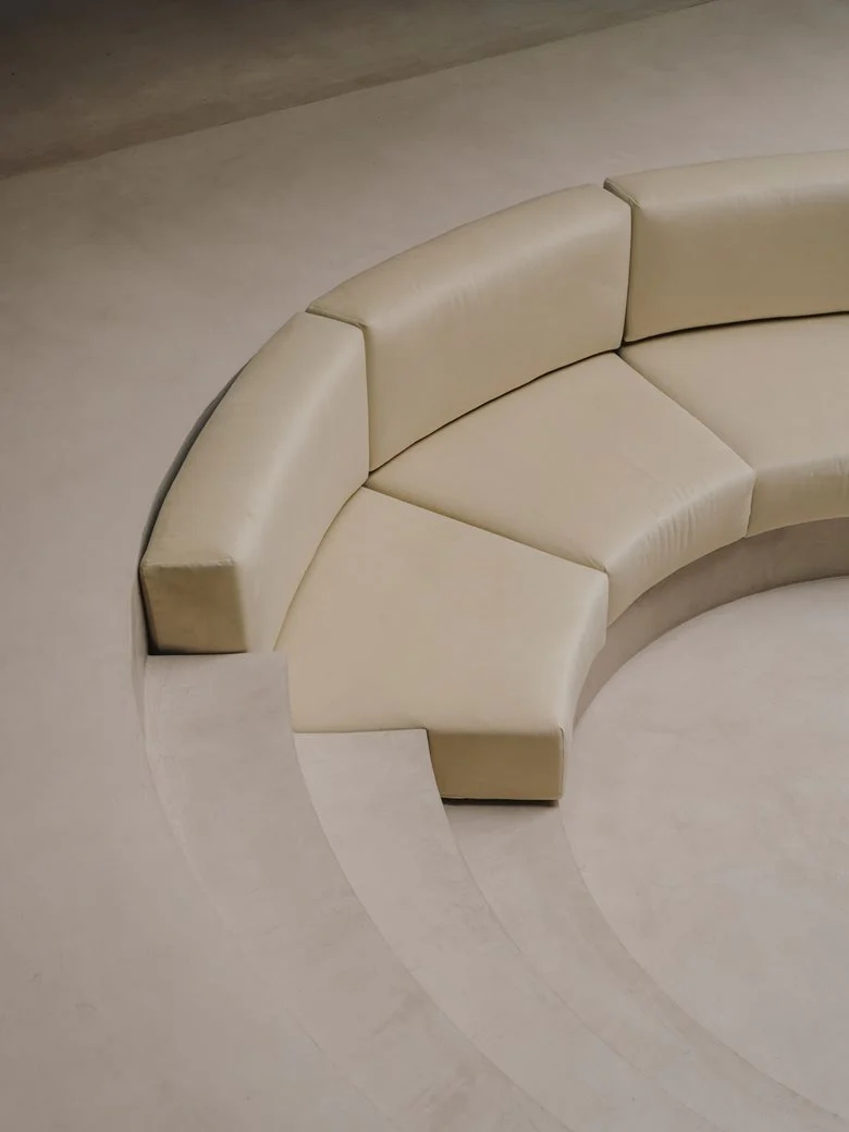 1.中心:穹顶 ,这个空间的设计灵感来源于古希腊神庙,即美丽女神阿佛洛狄忒的圣殿,是对美的颂歌。我们设计了一个天窗,为中央空间提供自然光,仿佛一个大型温室。在人行道上凿出的三个圆形大洞构成了下部空间,中间的大洞是一个大型花盆,里面种满了植物,让人联想到自然和美丽,而又不失精致。自然。雕塑赋予空间色彩和生命。其他的孔洞则变成了布艺坐垫的沙发,供人们休息和临时聚会之用。所有这些都是以这种梦幻般的概念设计的。一些沙发不会割裂空间的视觉,其圆形的造型和收集的沙发邀请人们进行非正式的聚会。
