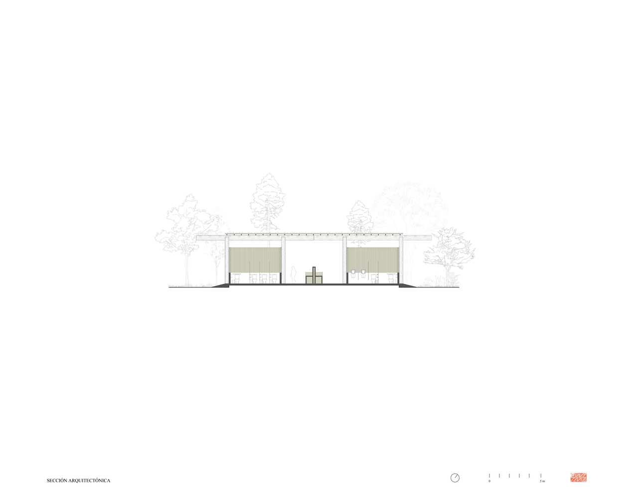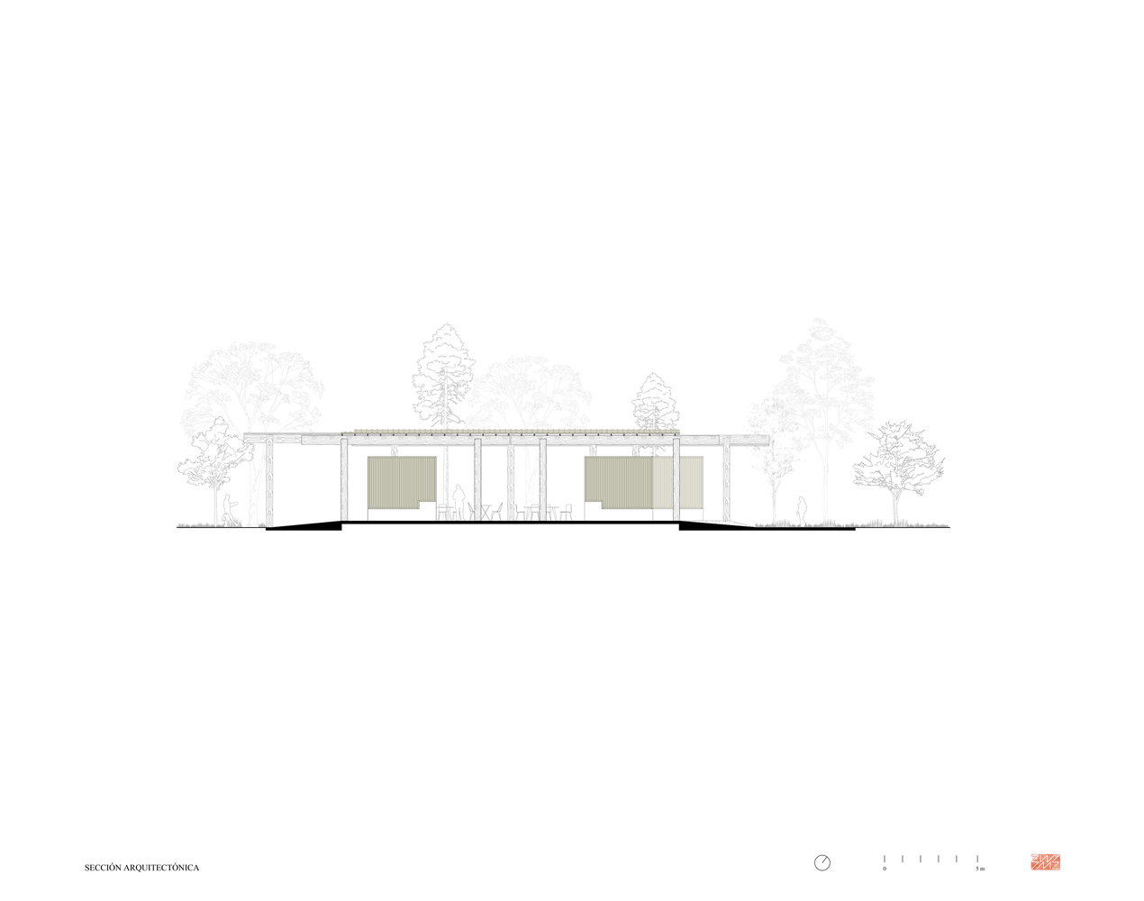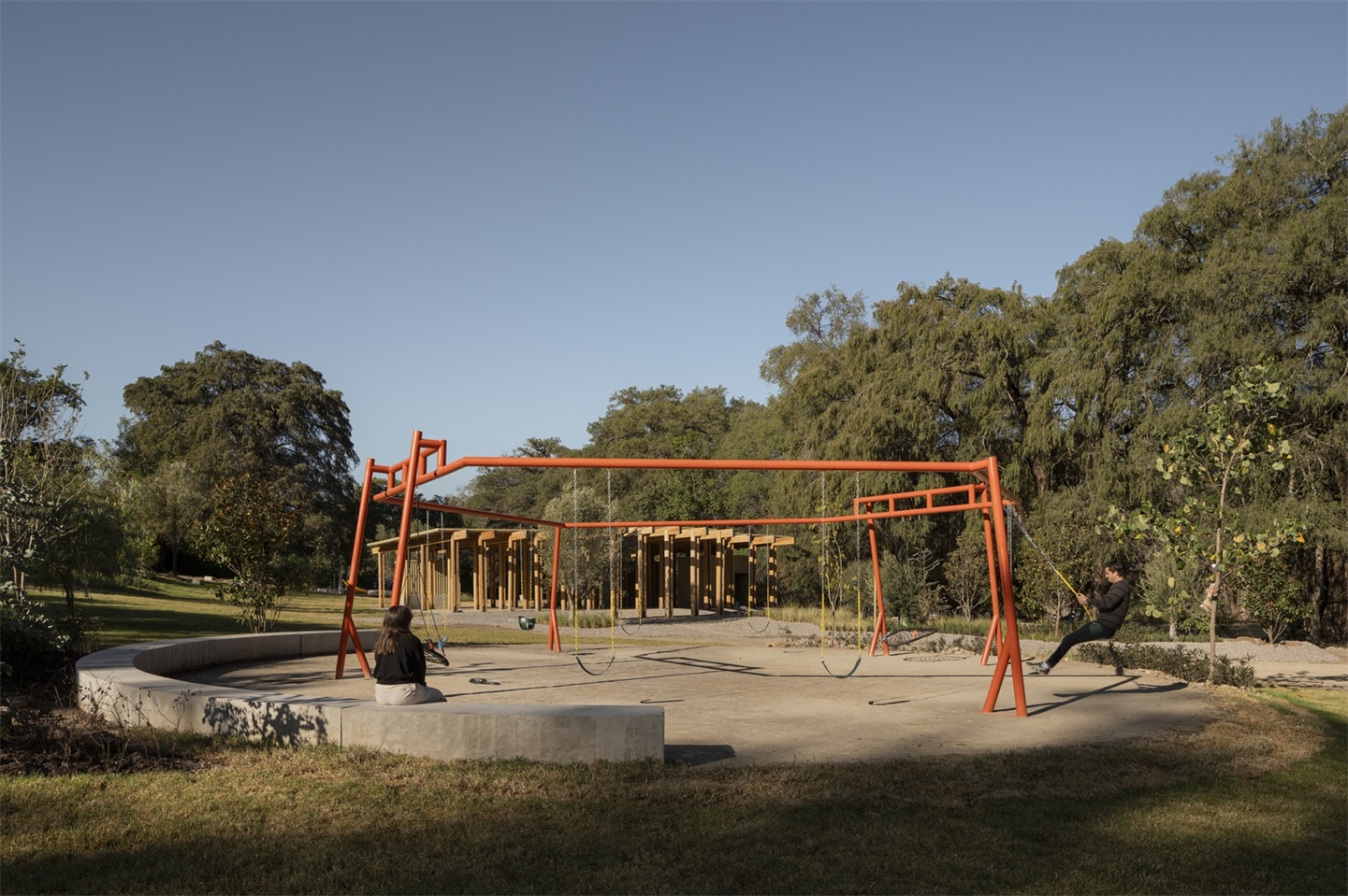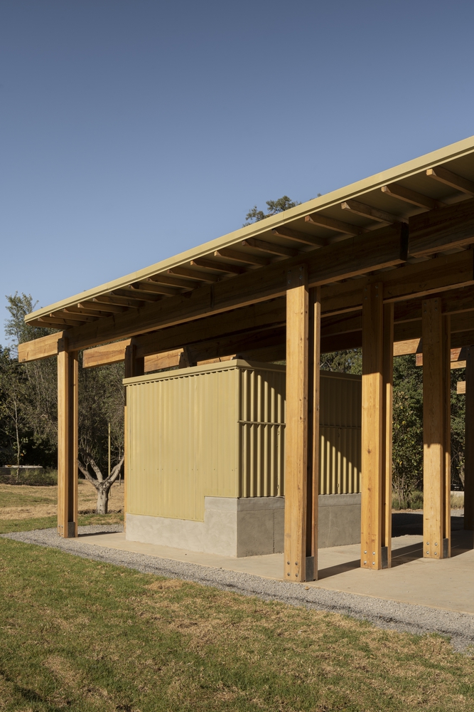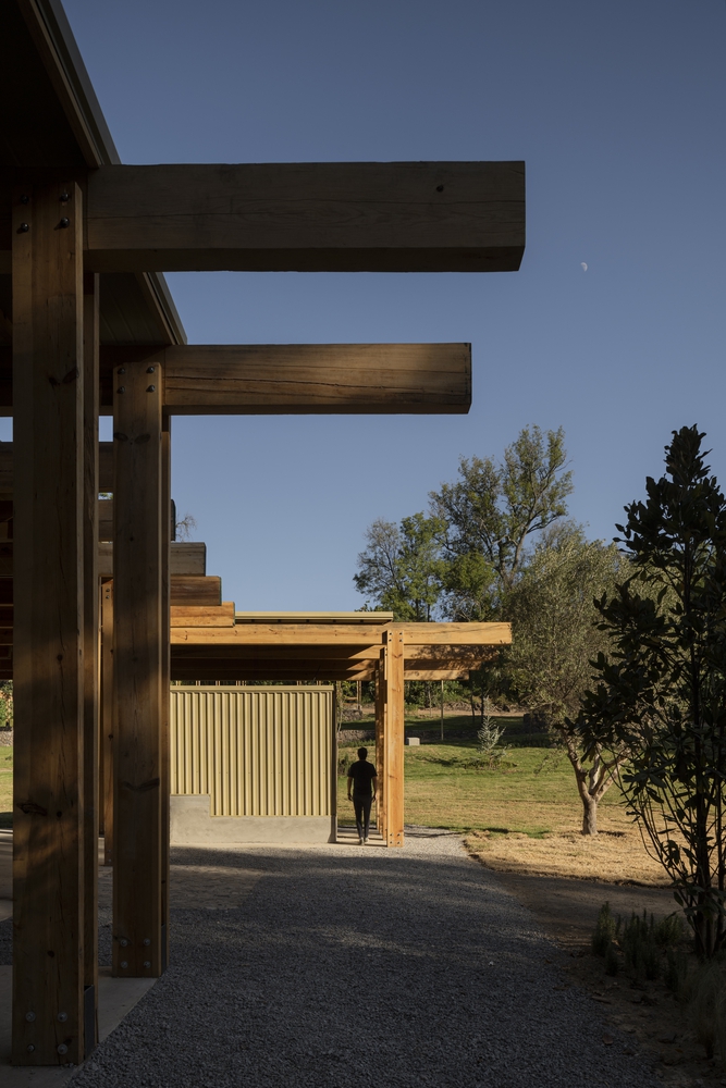 服务亭和餐饮亭采用轻质木结构,由双梁和柱体系构成,形如 “双 T”。在餐饮亭中,这种结构体系的韵律感创造了一系列动态空间,能够举办文化活动和与自然遗产相关的活动。