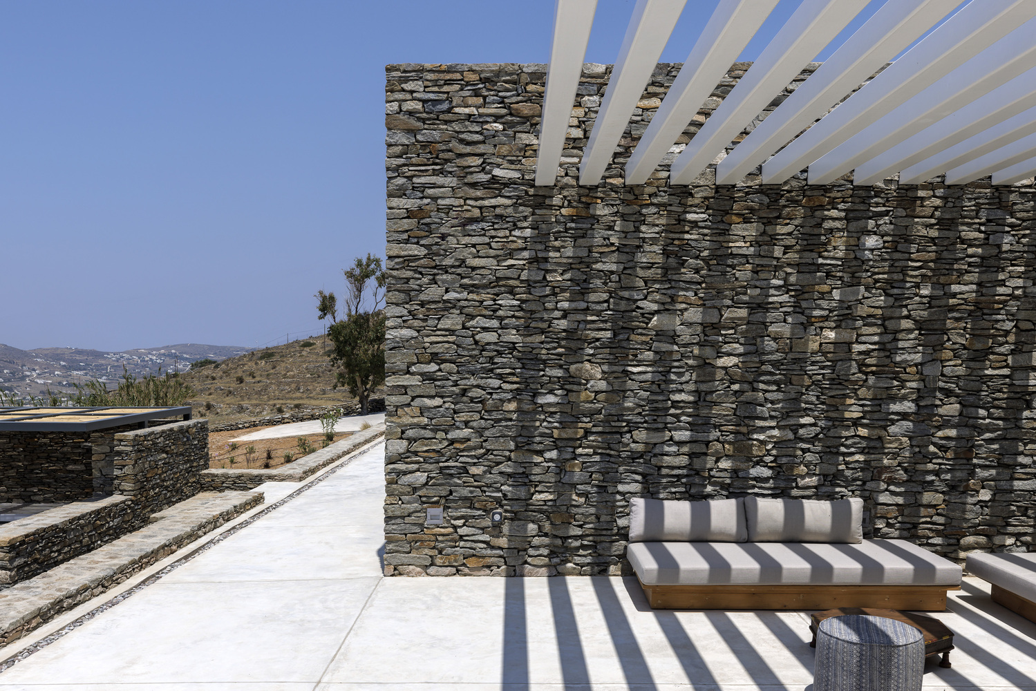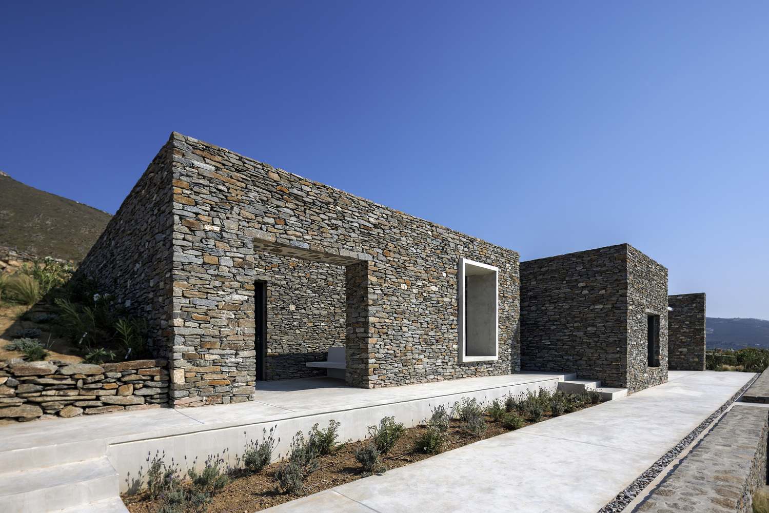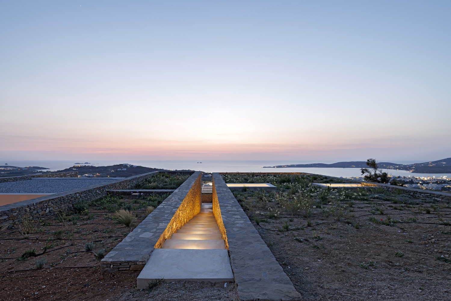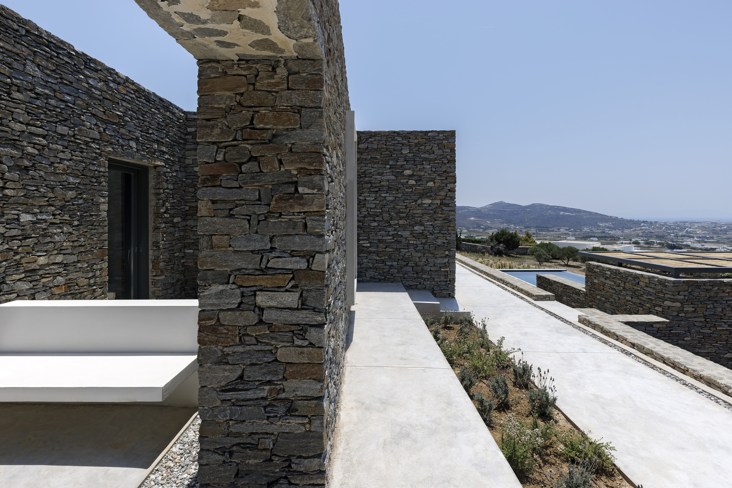 这座拥有五间卧室和一个中央活动区的避暑别墅位于帕罗斯岛的卡卡佩特拉。其朝西的朝向可提供帕罗基亚湾和开阔大海的全景视野。该项目从当地的干石墙和地质构造中汲取灵感,作为一个石质结构自然融入景观,与周围环境和谐共生。这片土地以岩石群和突出的地质构造为特征;“Kakapetra” 一词在词源上指 “粗石” 或岩石密集的地方。由于多石的特性,这里的土壤不适合农业种植,因此这些区域传统上被用于饲养牲畜,以便将牲畜圈养在远离可耕地的地方。