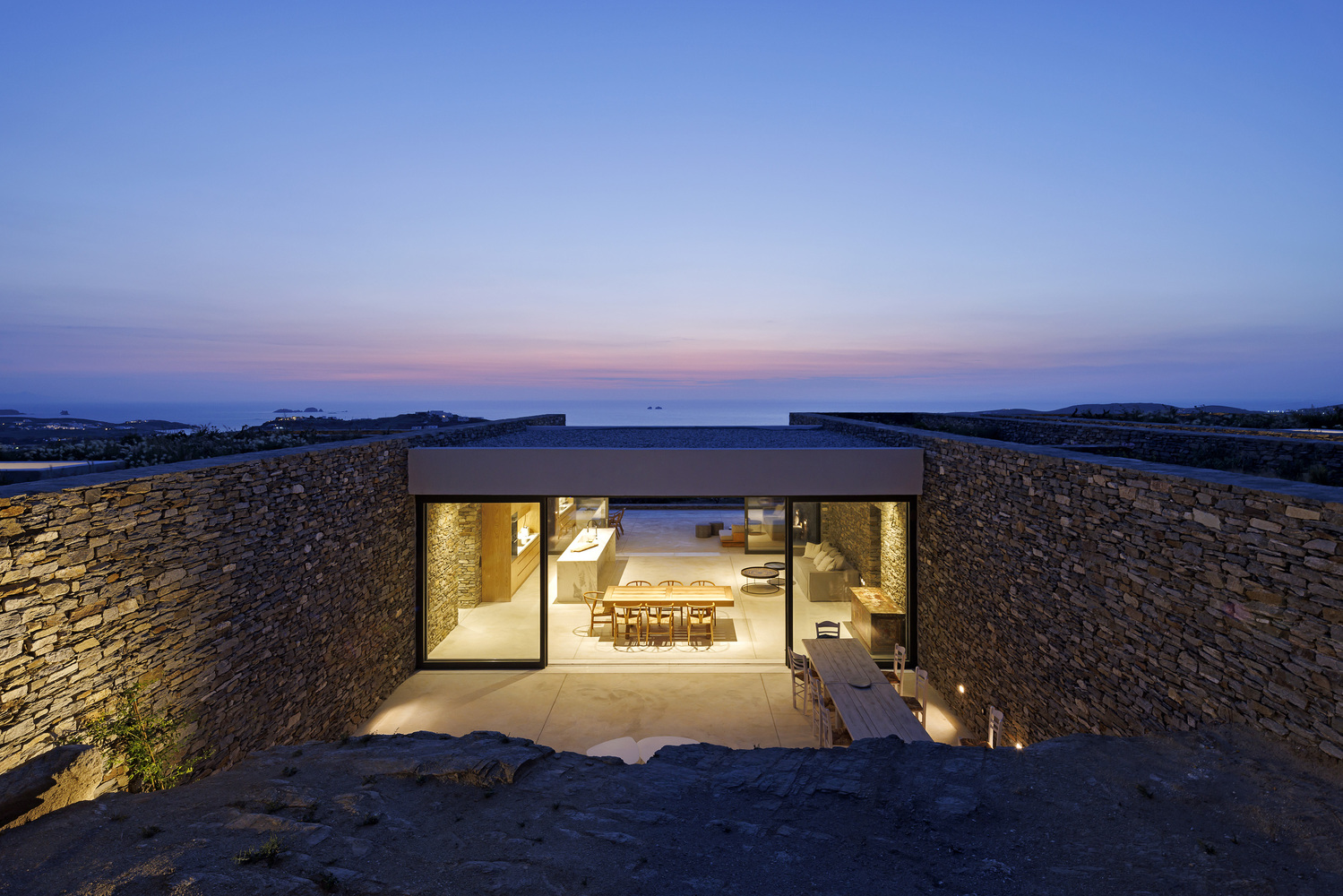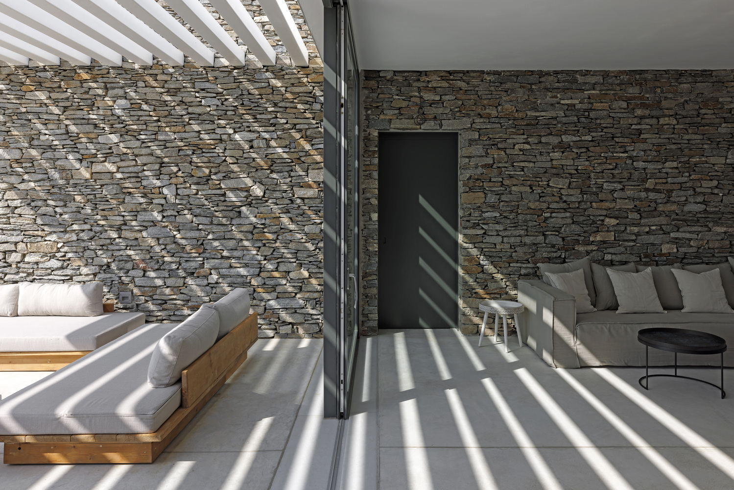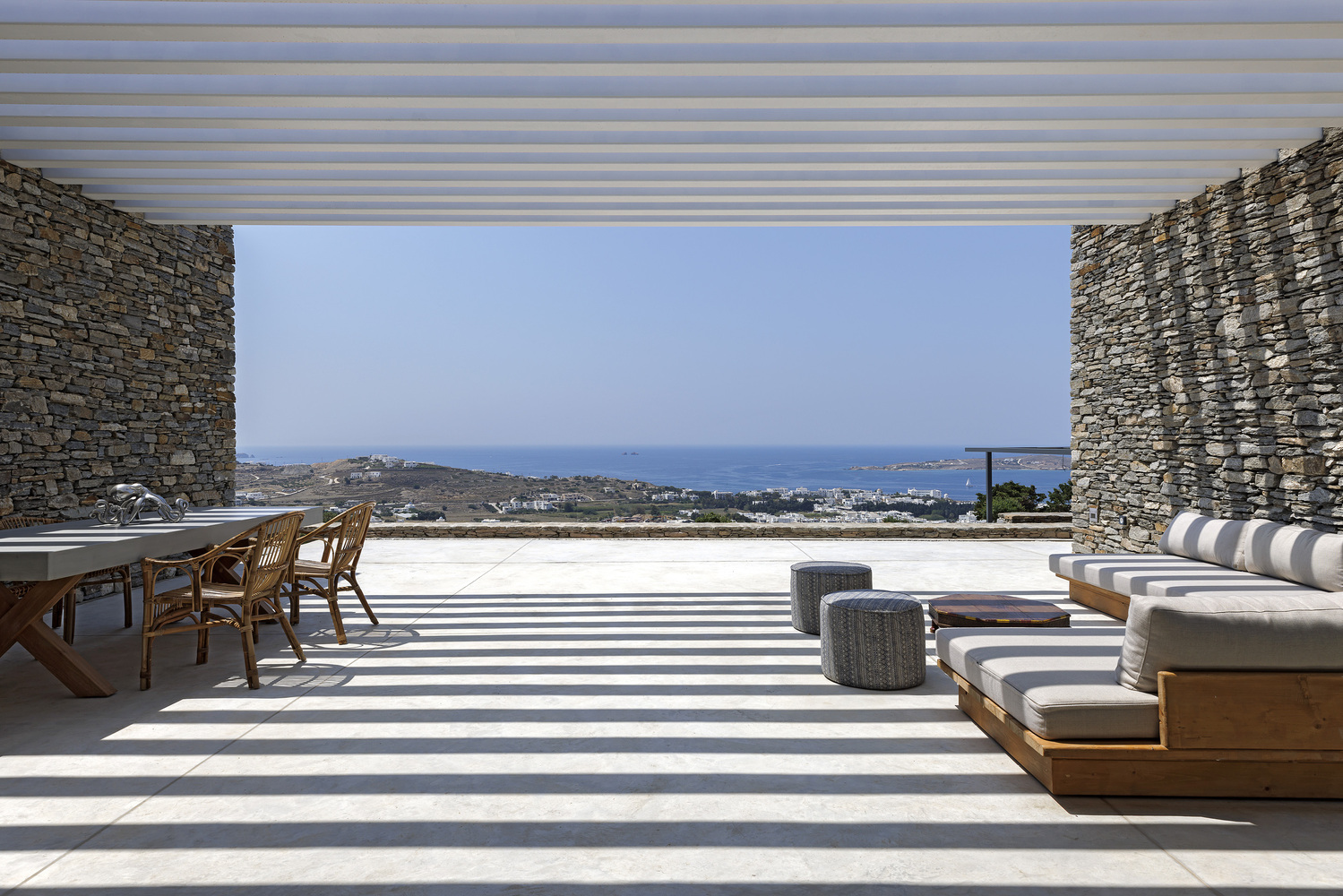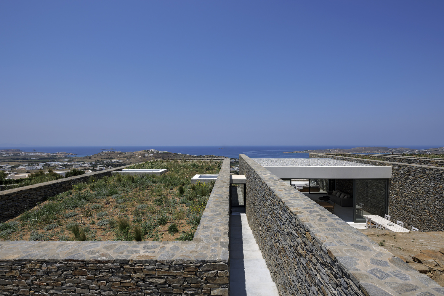 这座拥有五间卧室和一个中央活动区的避暑别墅位于帕罗斯岛的卡卡佩特拉。其朝西的朝向可提供帕罗基亚湾和开阔大海的全景视野。该项目从当地的干石墙和地质构造中汲取灵感,作为一个石质结构自然融入景观,与周围环境和谐共生。这片土地以岩石群和突出的地质构造为特征;“Kakapetra” 一词在词源上指 “粗石” 或岩石密集的地方。由于多石的特性,这里的土壤不适合农业种植,因此这些区域传统上被用于饲养牲畜,以便将牲畜圈养在远离可耕地的地方。