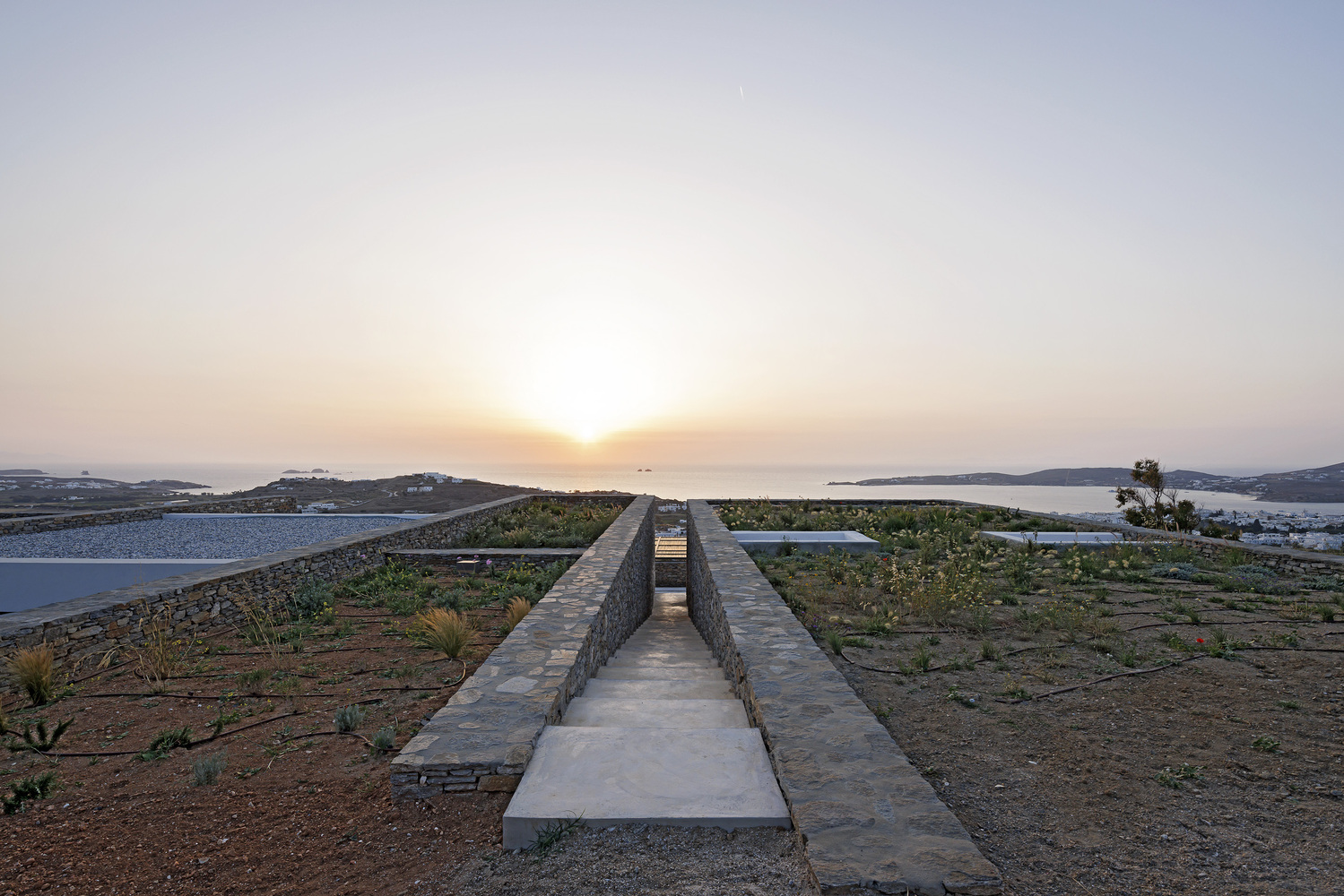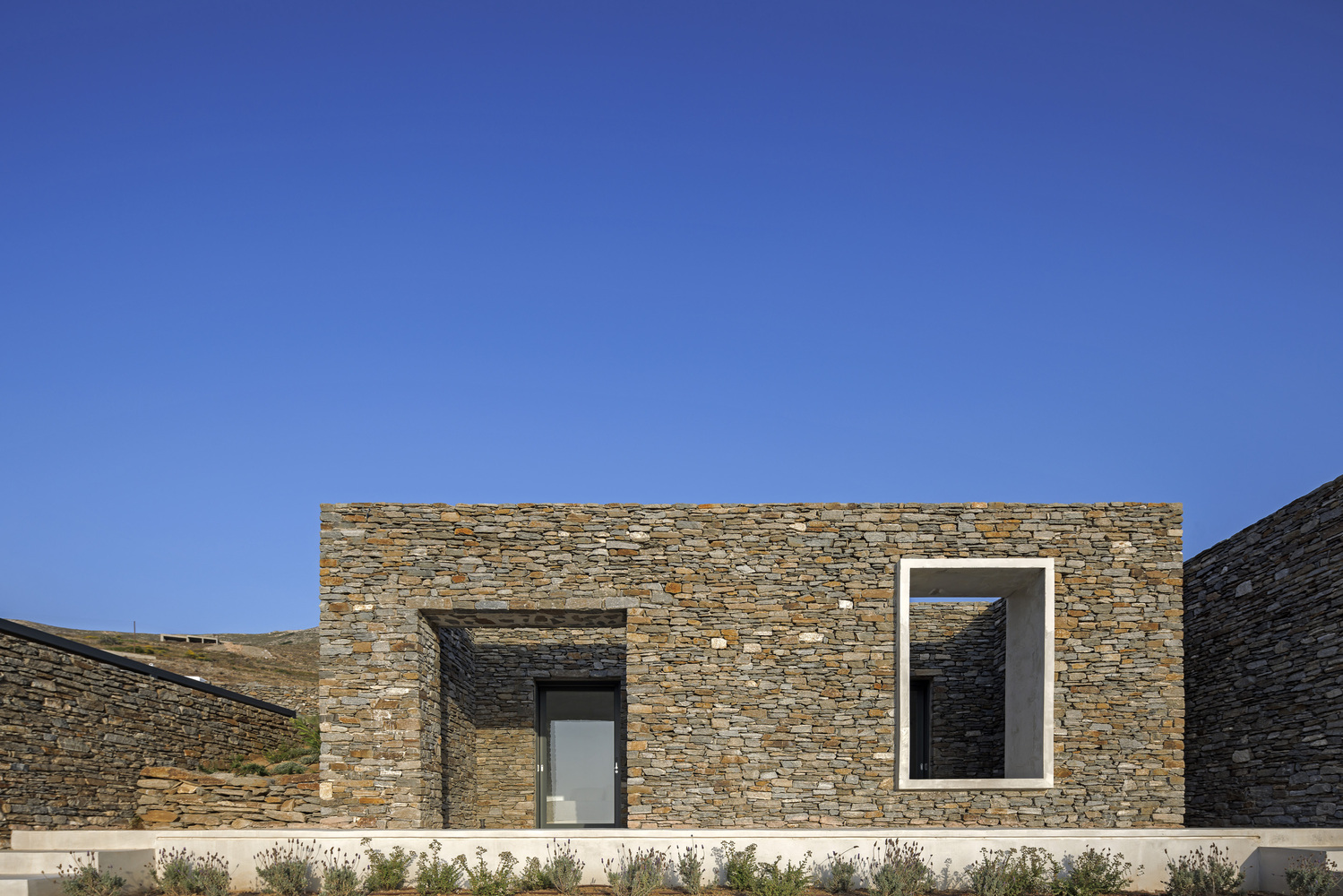 该建筑采用谦逊而尊重的态度:不明确界定空间界限,而是延伸空间,不凌驾于干旱多石的环境之上。人与岩石、自然之间的关系是这一建筑理念的核心。它在景观中留下的痕迹微乎其微,彰显了基克拉泽斯群岛环境的独特性。希腊诗人、诺贝尔奖得主奥德修斯・埃利蒂斯在《创世记》中探讨了世界的创造 —— 尤其是希腊的景观。他开篇即表明,创世是充斥希腊群岛的光。在他的宇宙起源说中,他谈到了岩石,这正是本作品的直接灵感来源。这个承载了数千年文明的地方所具有的神圣性,指导着建筑干预,通过个人的诠释,以一种谦逊而真诚的态度面对景观。