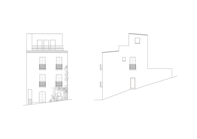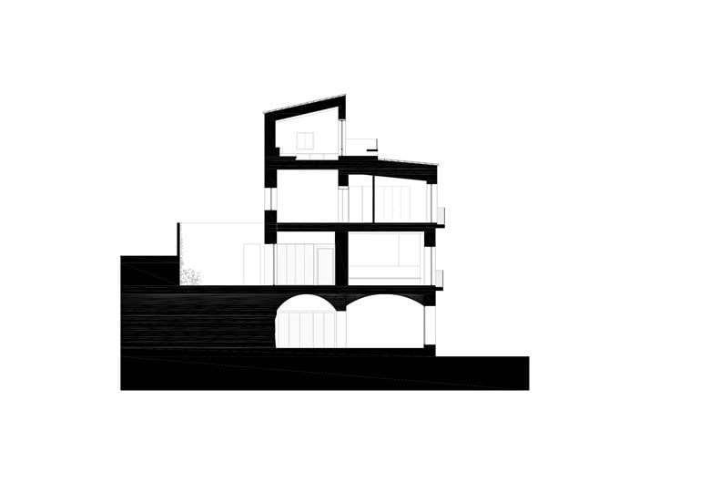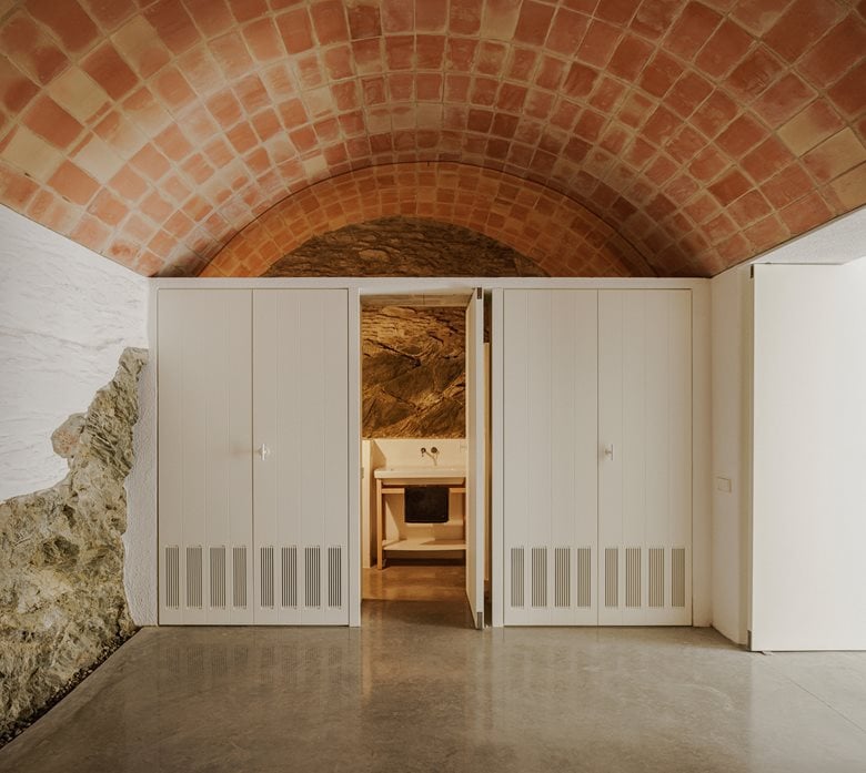 小屋共分为四层。底层带有独特的拱顶天花板,被设计为灵活空间:既可用作儿童游戏区,也可收纳航海装备。改造时新增的小型庭院,为一间嵌入原始岩石的房间引入了自然光与通风,增添了空间与材质的价值。一层为社交区域,包含厨房、餐厅和客厅。改造中在承重墙上开设了新的开口,不仅建立了房间之间的视觉联系,还让自然光得以自由流动。朝向庭院的大型开口则强化了室内外的连续性,营造出开阔、清新且充满活力的氛围。
