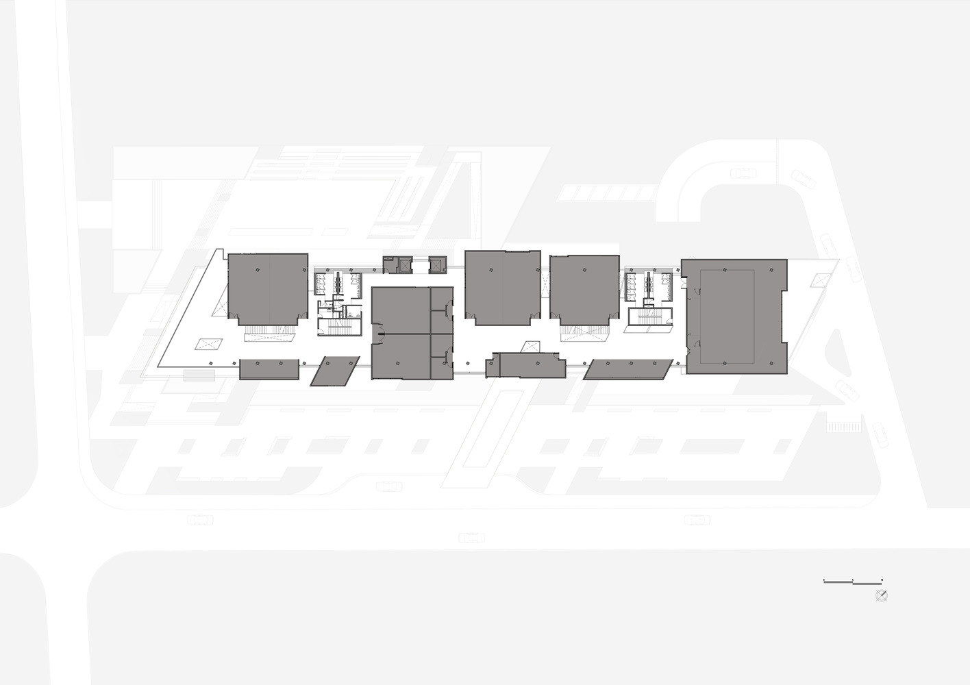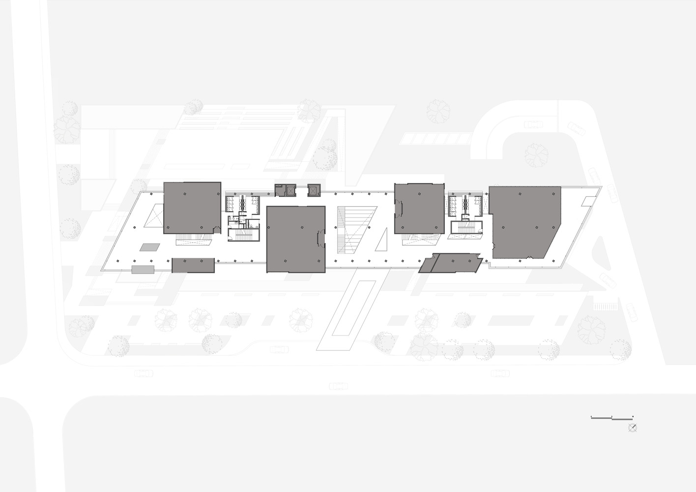 在确定平面设计的一般逻辑时,建筑以两条交叉轴线为基础,一条是水平轴线,赋予建筑水平的语言,另一条是倾斜轴线,指向阿贡火山,与建筑的纵向形式斜交,并确定其空间的方向。
