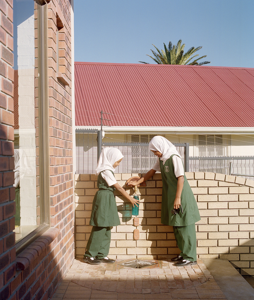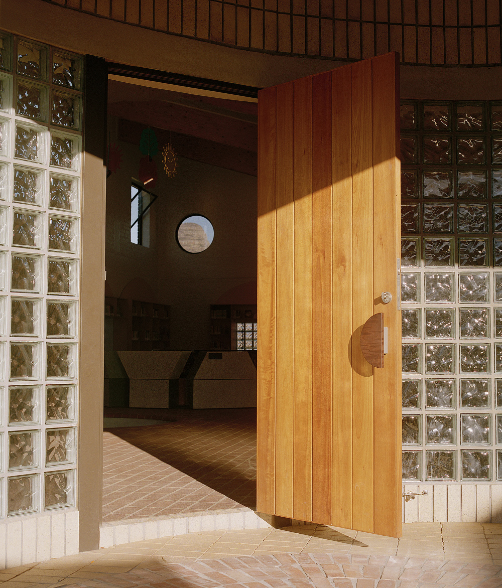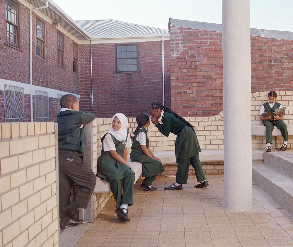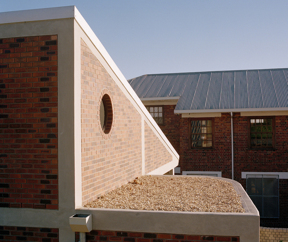 为铭记开普敦第六区的历史(曾因种族隔离时期的强制迁移而历经变革),设计团队将 “土地记忆” 融入建筑细节,让图书馆成为 “历史的载体”:黏土里的时光痕迹:事务所与艺术家扎扬・汗(Zayaan Khan)合作,收集周边社区的黏土 —— 部分黏土中还嵌有第六区昔日被拆房屋的碎石,将其制成门把手面板、装饰瓷砖,以及定制的 “第六区砖块”;历史的 “实体传承”:这些黏土制品被巧妙布置在空间中 —— 门把手让孩子每天触摸 “土地的记忆”,装饰瓷砖讲述着社区的过去,“第六区砖块” 则铺设在入口大厅地面与室外饮水池前。从实体到象征意义,这些细节让图书馆深深扎根于这片土地,也让孩子在阅读之外,能触摸到自己生长的地方的历史。