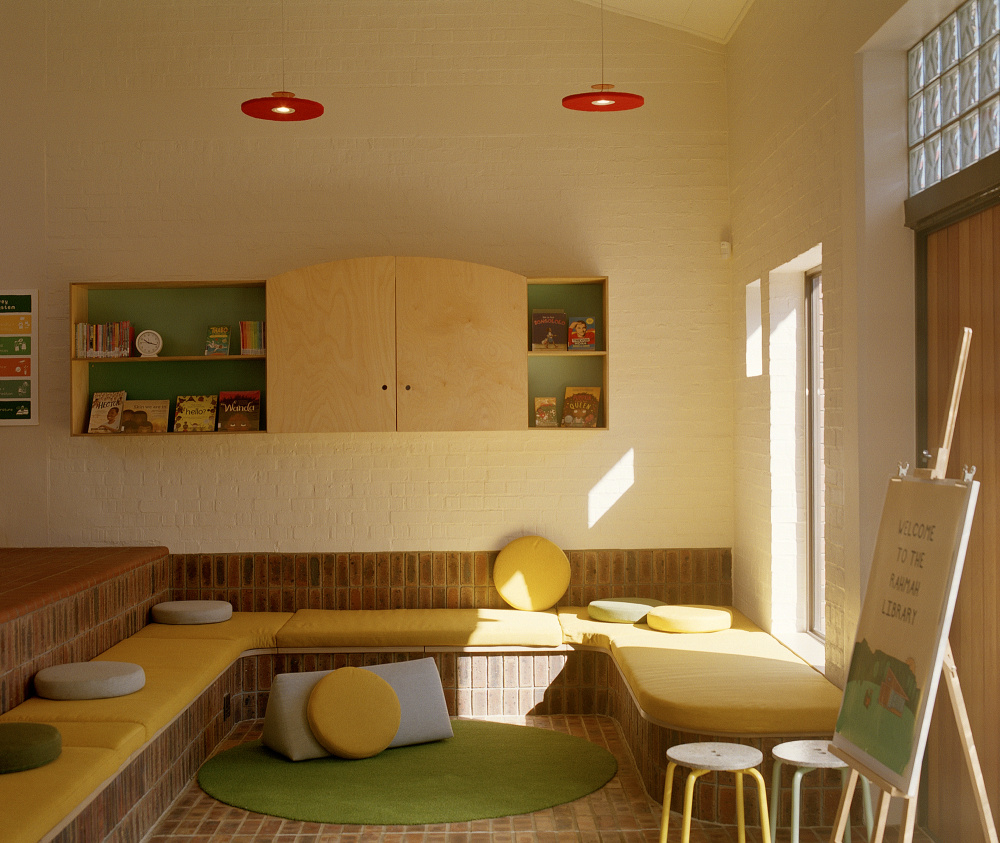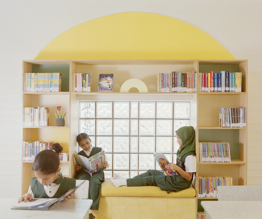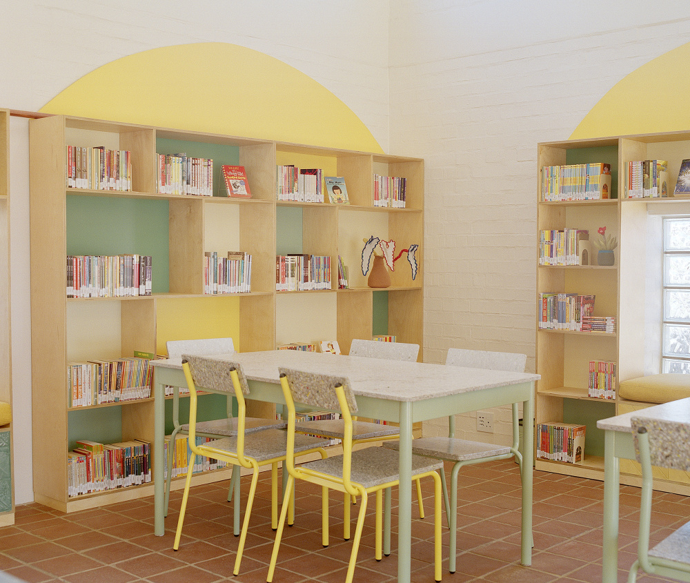 拉赫玛图书馆最动人的设计,在于它是 “孩子参与共创” 的成果。在儿童中心设计师扎内莱・门嫩(Xanelé Mennen,奥托基金会成员)的协助下,The MAAK 建筑事务所通过一系列工作坊,让学生成为 “未来图书馆的主人”:从创意到现实的 “拉赫玛 – 拉玛” 书架:“打造一个像‘魔法’一样的书架”—— 这是学生在工作坊中提出的想法,后来由当地家具设计师佩德森(Pedersen)与伦纳德(Lennard)转化为 “拉赫玛 – 拉玛”(Rahmah-Rama)书架。这个书架不仅造型充满童趣,更贴合孩子的身高,方便他们取放书籍;信任与期待的建立:工作坊不只是 “收集创意”,更让孩子感受到 “自己的想法被重视”。门嫩提到,这个过程 “赢得了学生的信任,培养了他们的自主意识”,也让孩子们对图书馆充满期待。当看到自己的创意变成现实,孩子对这座空间的 “情感联结” 也随之加深 —— 这里不再是 “学校的图书馆”,而是 “我们设计的图书馆”。