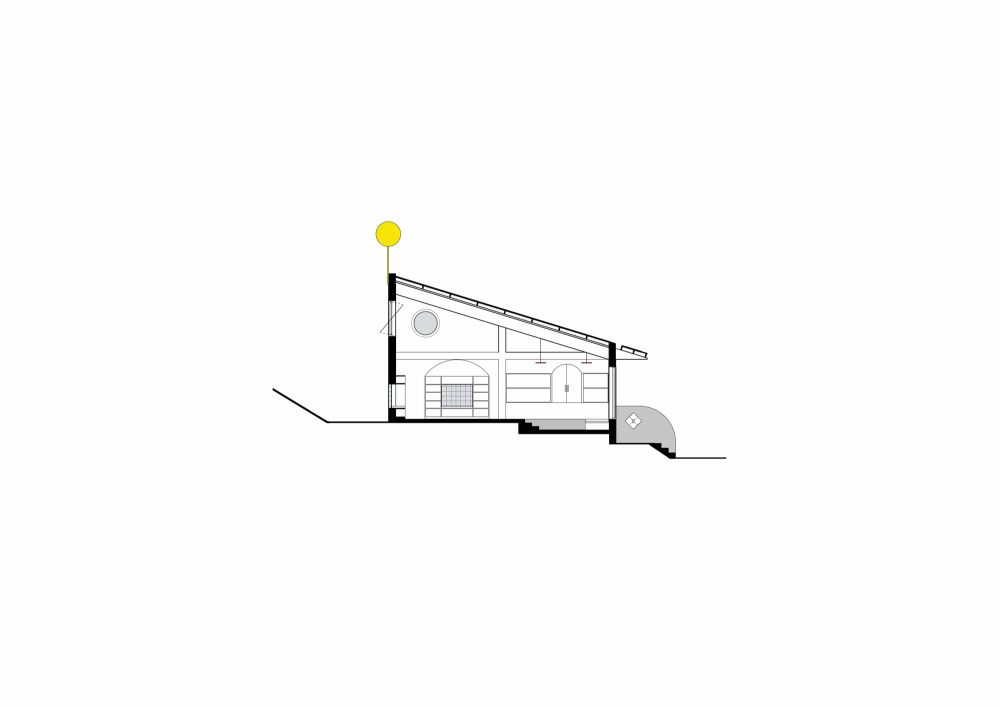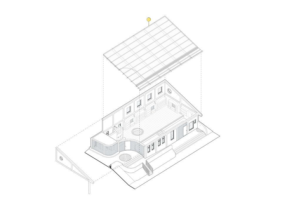单坡屋顶的双重智慧:建筑以简洁的单坡屋顶为标志,屋顶向南侧抬高,将远处壮丽的山景引入视野 —— 孩子们在阅读间隙抬头,就能与自然对话;而北侧较低的屋顶则巧妙遮挡烈日,避免阳光直射室内,让图书馆始终保持凉爽舒适,适配当地气候;弧形入口的亲和力:三角形东立面下方,一面弧形玻璃砖墙向外倾斜,打破了传统建筑 “直角” 的生硬感。这面墙不仅围合出带顶篷的活动区,为孩子们提供雨天也能玩耍的空间,更形成了柔和的入口曲线 —— 就像张开的怀抱,让孩子愿意主动走进这座 “阅读屋”;砖墙的历史呼应:外立面用不同砌砖方式、色彩与纹理打造层次,特意呼应拉赫玛尼耶小学原校舍(第六区现存最古老的学校建筑)的材料风格。新旧建筑在材质上的呼应,让图书馆不显得突兀,反而像从校园里 “自然生长” 出来,增强了空间的归属感。