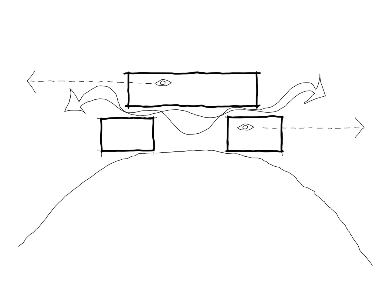 该设计概念基于对立元素之间的对话:扎根于大地之物与漂浮于空中之物的对话,封闭庇护之所与开放通透空间的对话。两种几何形态 —— 一个锚定在地面,另一个看似悬浮在空中,共同构建出兼具结构性与象征性的设计语言。精心打造的间隙空间将这些体量连接起来,创造出过渡、停顿与连接的时刻。木质遮阳板环绕着上层结构,既调控着光线与气流,又强化了建筑体量悬浮于地面之上的感觉。住宅的碎片化布局营造出层层递进的抵达体验,展现出框定的景致,并促进了建筑与自然景观之间的流畅互动。