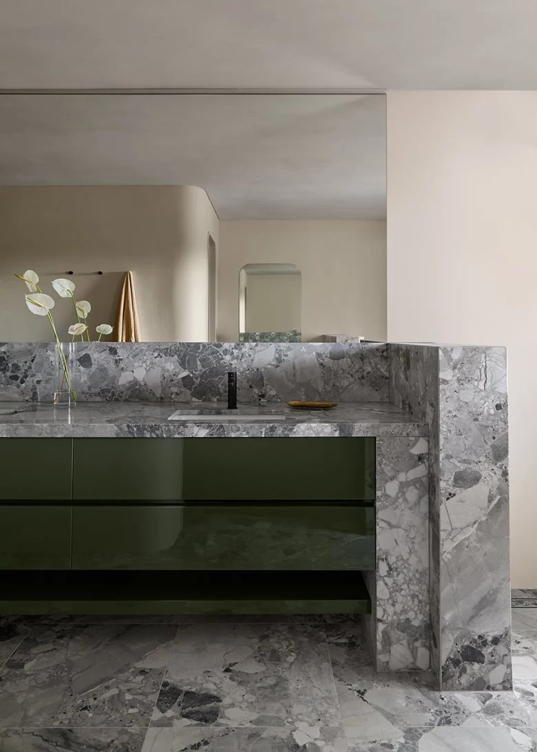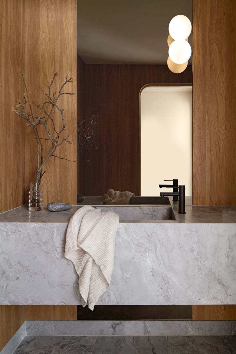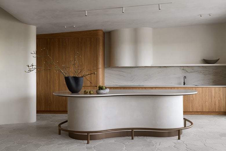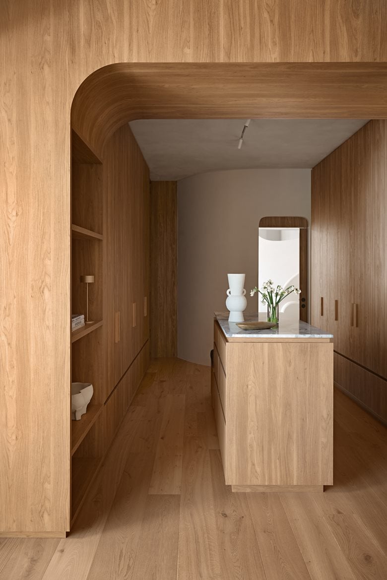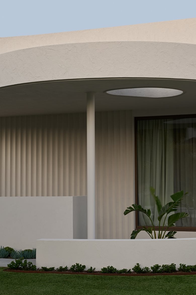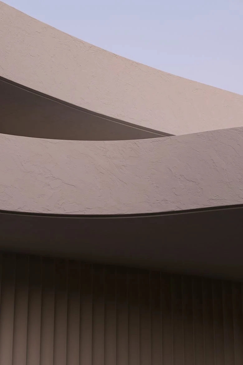 翁达别墅住宅设计是(Onda residence)对珀斯(Perth)河畔郊区一栋破败的平房式住宅进行了重新构想,将其改造为一座现代家庭住宅。设计团队在保留原有建筑主体结构的基础上,重新规划了空间布局,并引入流畅的曲线元素:既最大化利用了空间、优化了动线,又在饱览城市景观的同时,确保了居住私密性不受影响。设计中精心选用了石灰岩、木材与天然石材作为核心材料,与住宅起伏有致的形态相得益彰,营造出一处宁静舒缓的环境,供人们在此展开日常生活。“地势坡度是关键所在,我们没有与之对抗,而是让土地本身指引设计方向。”(阿拉・萨拉莫内,Ara Salamone)