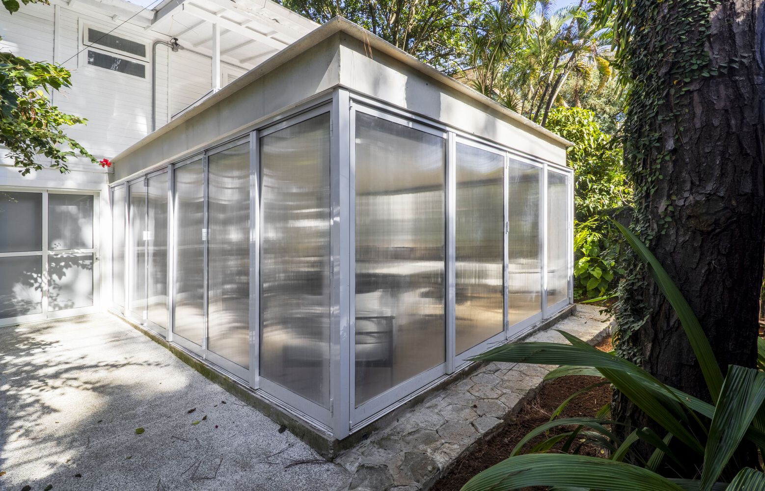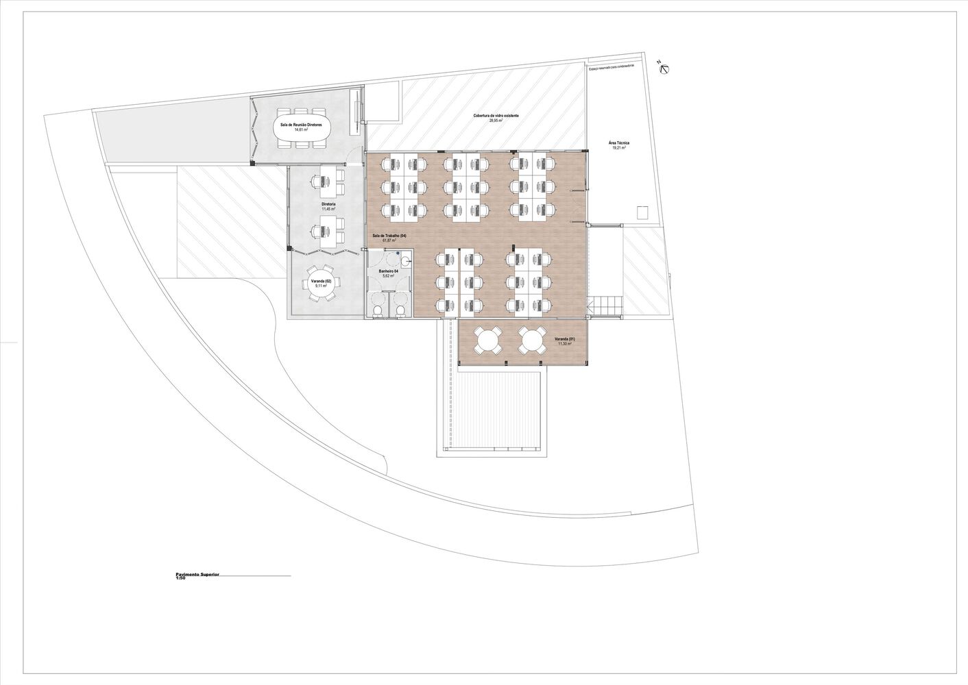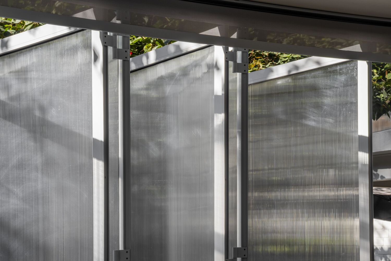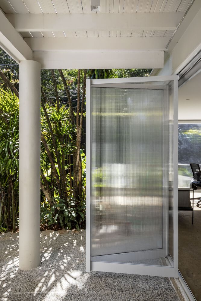 该企业办公室设计项目坐落于茂密成熟的植被之间,其设计核心在于优先实现与自然的融合,并选用轻质材料,打造出既具功能性、又富亲和力的建筑形态。建筑主体采用白色结构,裸露的倾斜屋顶清晰可见,内部一系列功能空间通过室内外通道相互连接,消弭了室内与室外的边界。建筑外立面采用半透明蜂窝状聚碳酸酯板,在保障私密性的同时,引入充足的自然光,营造出柔和舒适的室内环境。
