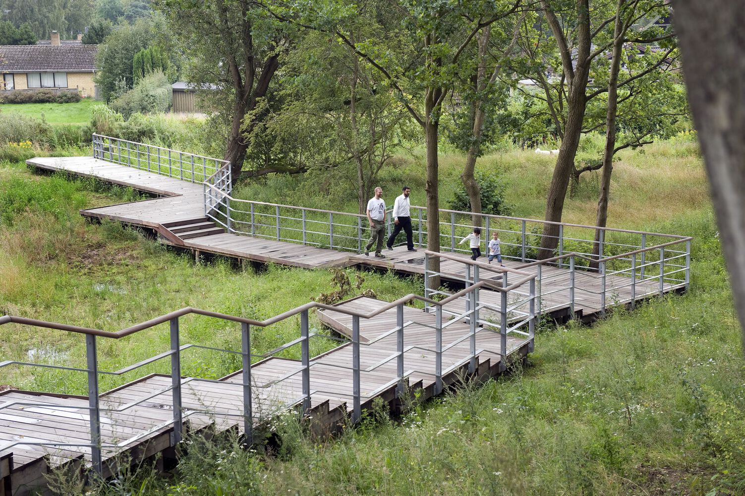 过去,雨水被隐藏在地下的管道中,而现在,雨水管理在地表的系统中显现出来,为城市提供了新的娱乐可能性。现在,人们可以沿着水道从小型水池到渗水道和沟渠,一直流到大型水池和乌瑟洛德河。所有的水都会通过雨水床和水池等净化元素流过。蓝色和绿色元素现已成为科克达尔的组成部分。乌瑟罗德河的水质曾经很差,而且失去平衡。