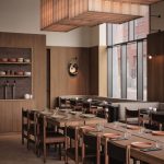 以中央弧形吧台为核心将海滨风情与都市精致无缝融合的餐厅设计